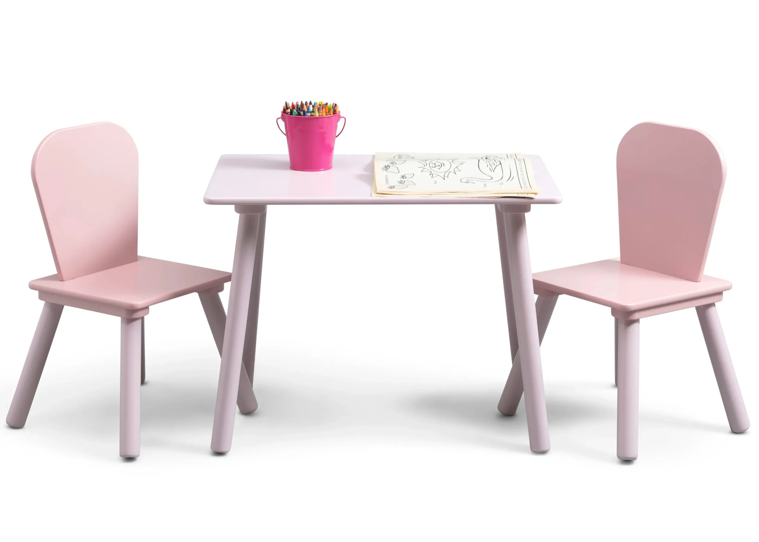 Complete your child’s playroom or bedroom with this 4-Piece Toddler Playroom Set by Delta Children. Vibrant and playful, this set includes a wooden play table, two coordinating chairs and a toy organizer. Also included in this set, a set of reusable vinyl cling stickers that kids will love arranging to the sides of the toy organizer to create a new story every time they play. All items are at the perfect kid-sized height to help teach your little one responsibility and independence as they play, eat and clean up on their own. The adorable two-tone design ensures your little one’s playroom is a stylish and charming as the rest of your home. Ideal for both boys and girls, this kids’ playroom set comes in two colors, Grey/White and Pink/White. Get it today–the play possibilities are endless with this versatile set! Recommended for ages 3+.