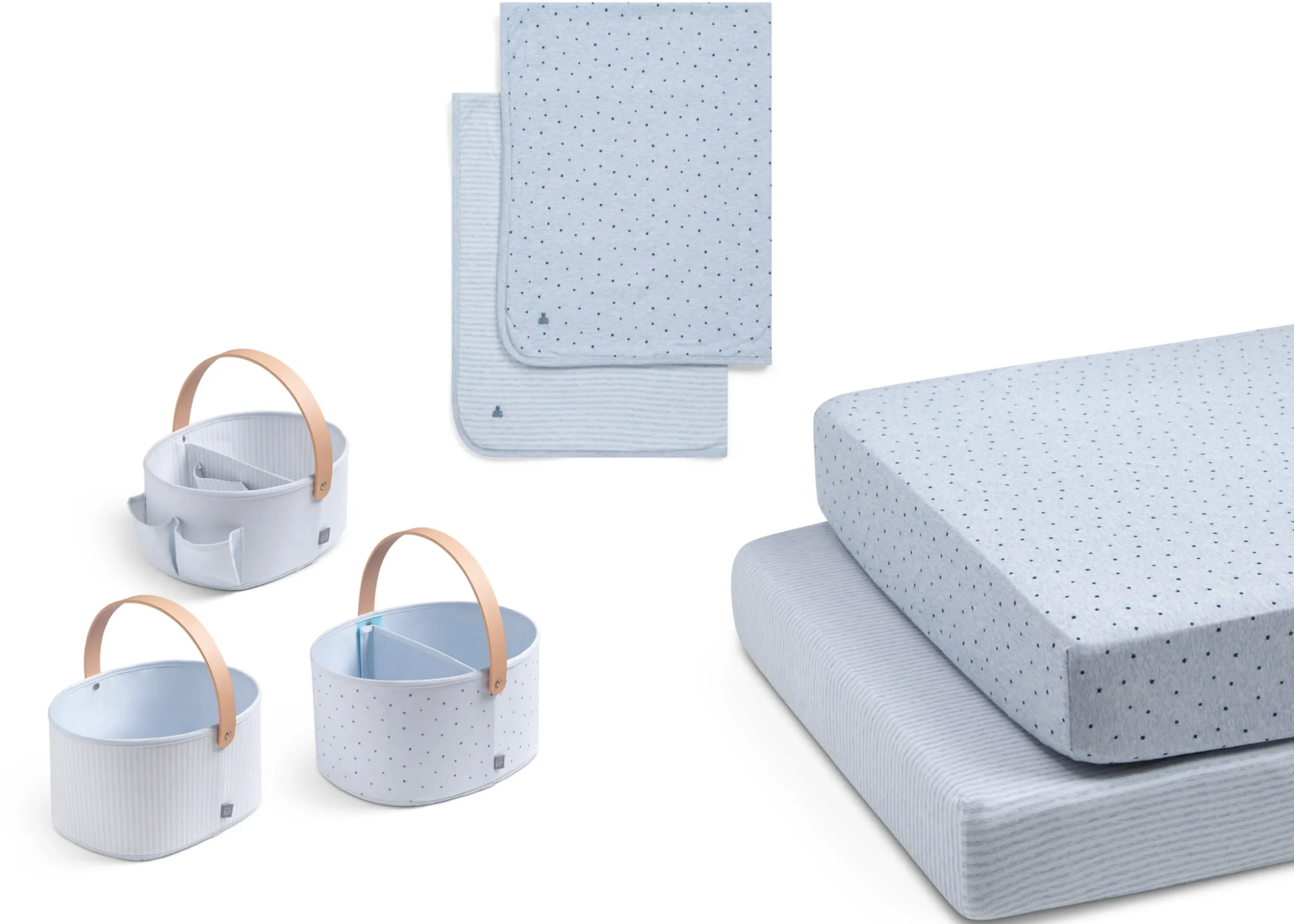 - This 7-Piece Nursery Bundle includes everything you need; 2 Fitted Crib Sheets, 2 Blankets and 4 Fabric Bins.