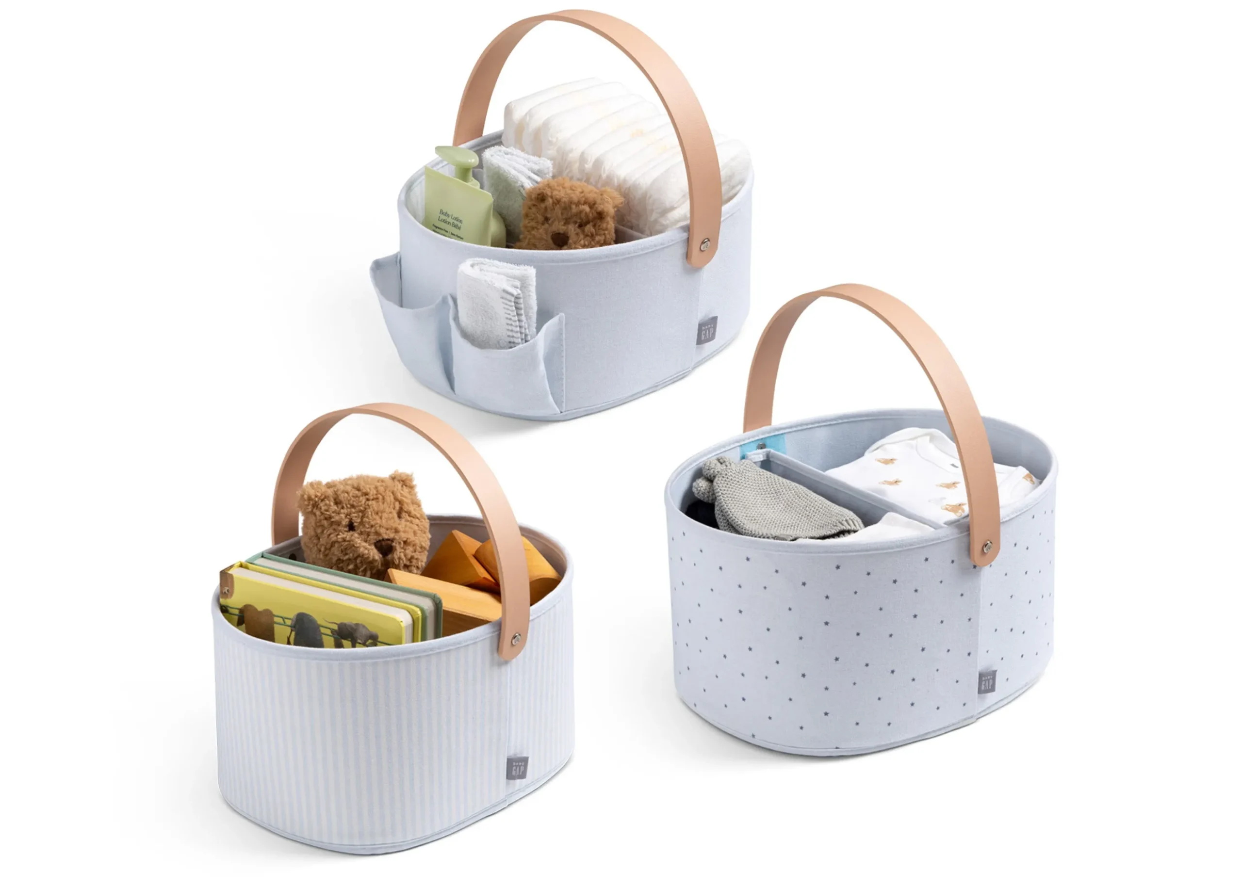 This babyGap by Delta Children 7-Piece Nursery Bundle includes everything you need; 2 Fitted Crib Sheets, 2 Blankets and 4 Fabric Bins.