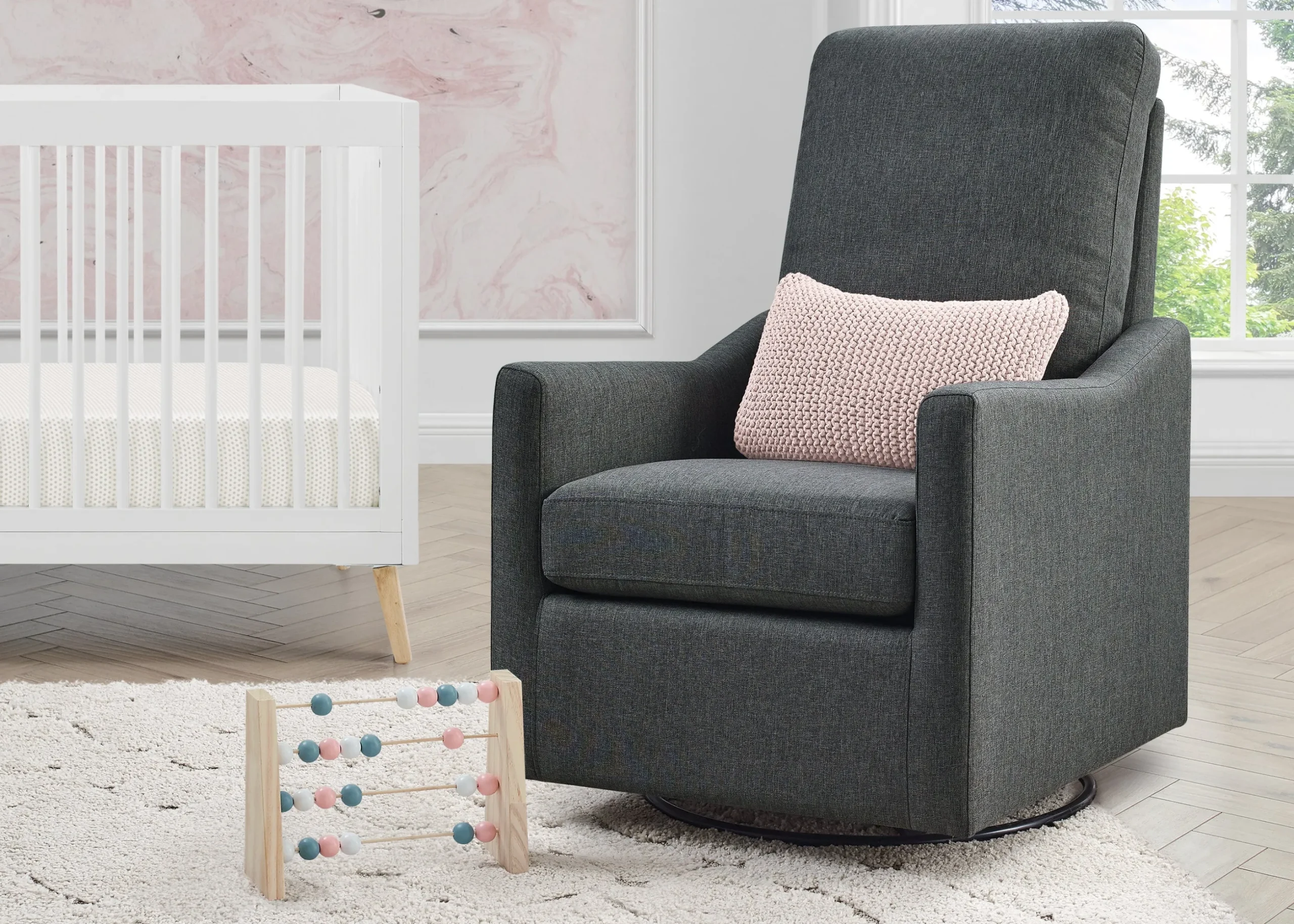 Sure to be the best seat in the house, this chair features a 360-degree swivel and gentle gliding motion that’s perfect for soothing, feeding, and snuggling with your baby