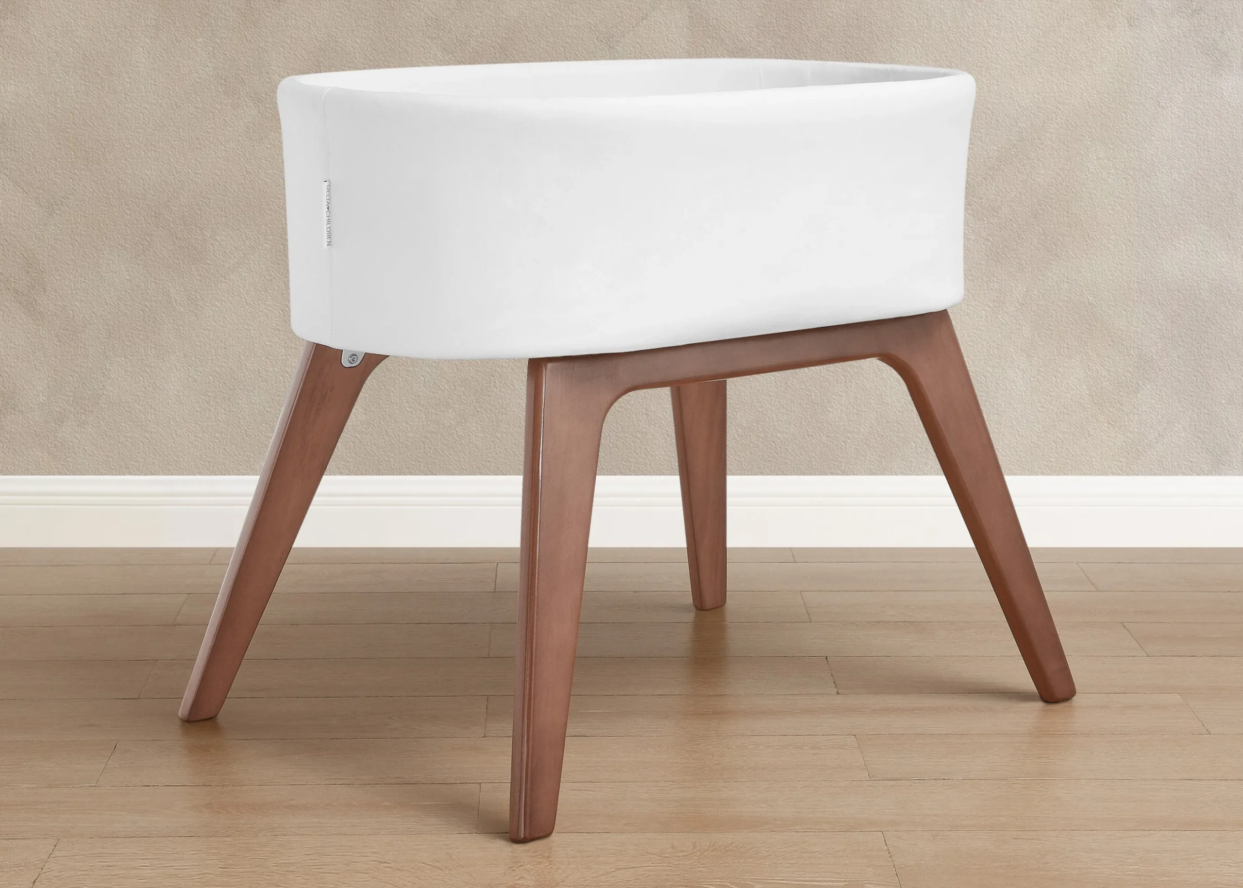 The Aero Bassinet by Delta Children is a dream come true, for babies and parents! The perfect combination of beautiful materials and quality construction, this modern bassinet features solid wood legs and organic GOTS Certified performance fabric. The stain-resistant outside fabric will keep your bassinet looking pristine through all your baby’s spills, spit ups and accidents while the inside knit fabric allows for constant, unobstructed airflow. Complete with a water-resistant mattress and machine washable fitted sheet, this bassinet offers unmatched convivence and style. This bassinet is recommended for babies 0-5 months. Max weight 30 lbs. Stop use at 5 months or once your infant begins to push up on their hands and knees, whichever comes first.
