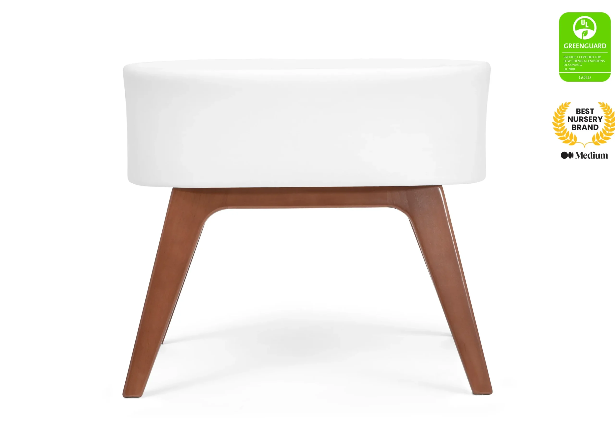 The outside of this bassinet is upholstered in 100% Organic GOTS Certified performance fabric. This stain-resistant bassinet will look its best for years to come