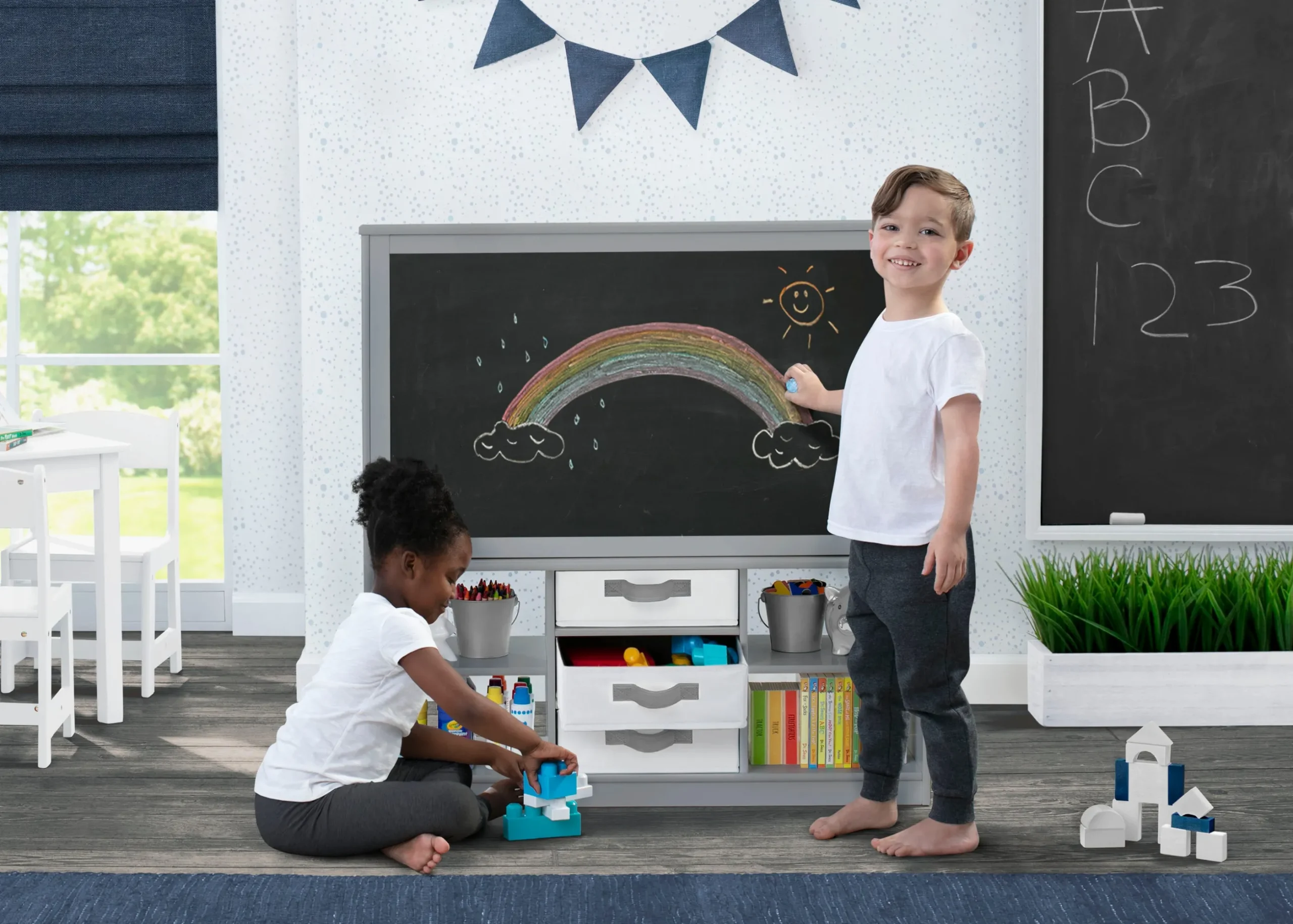 - Easel coordinates with other products by Delta Children in the same finish