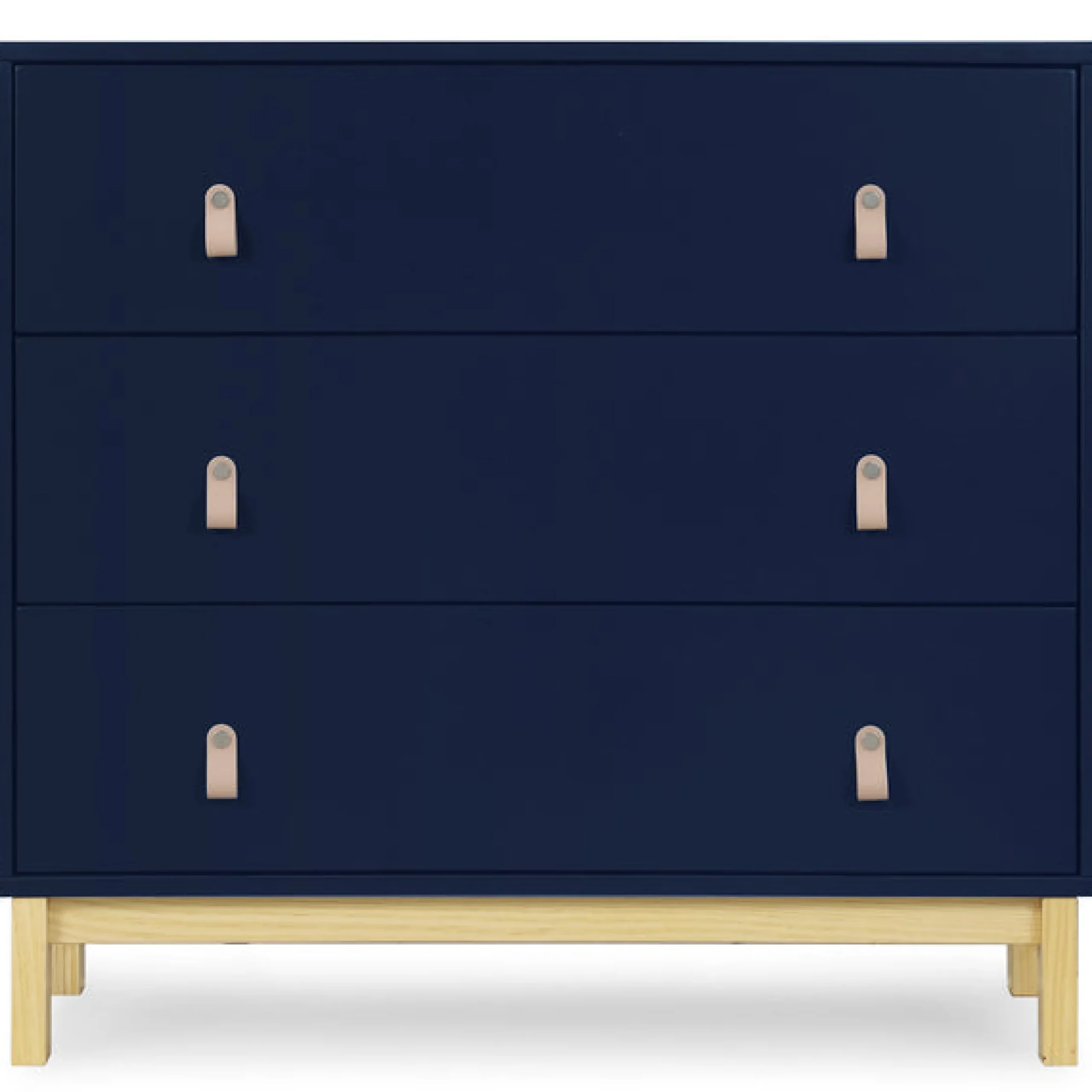The babyGap Legacy 3 Drawer Dresser with Leather Pulls is a great addition to any nursery or kids’ bedroom. Crafted of sturdy, sustainable materials like New Zealand pine to give it plenty of longevity, this versatile dresser has three spacious drawers for plenty of storage and leather drawer pulls for a bit of fun. Plus, it’s GREENGUARD Gold Certified, which means it’s built to contribute to cleaner air for a healthy home. Available in Bianca White/Natural, Navy/Natural and Ebony/Natural. Easily mix, match, and layer with other items from the babyGap Furniture and Bedding Collection. Pair with the coordinating Changing Top #W173810 to convert the dresser into a convenient changing table (Changing Top and changing pad sold separately).