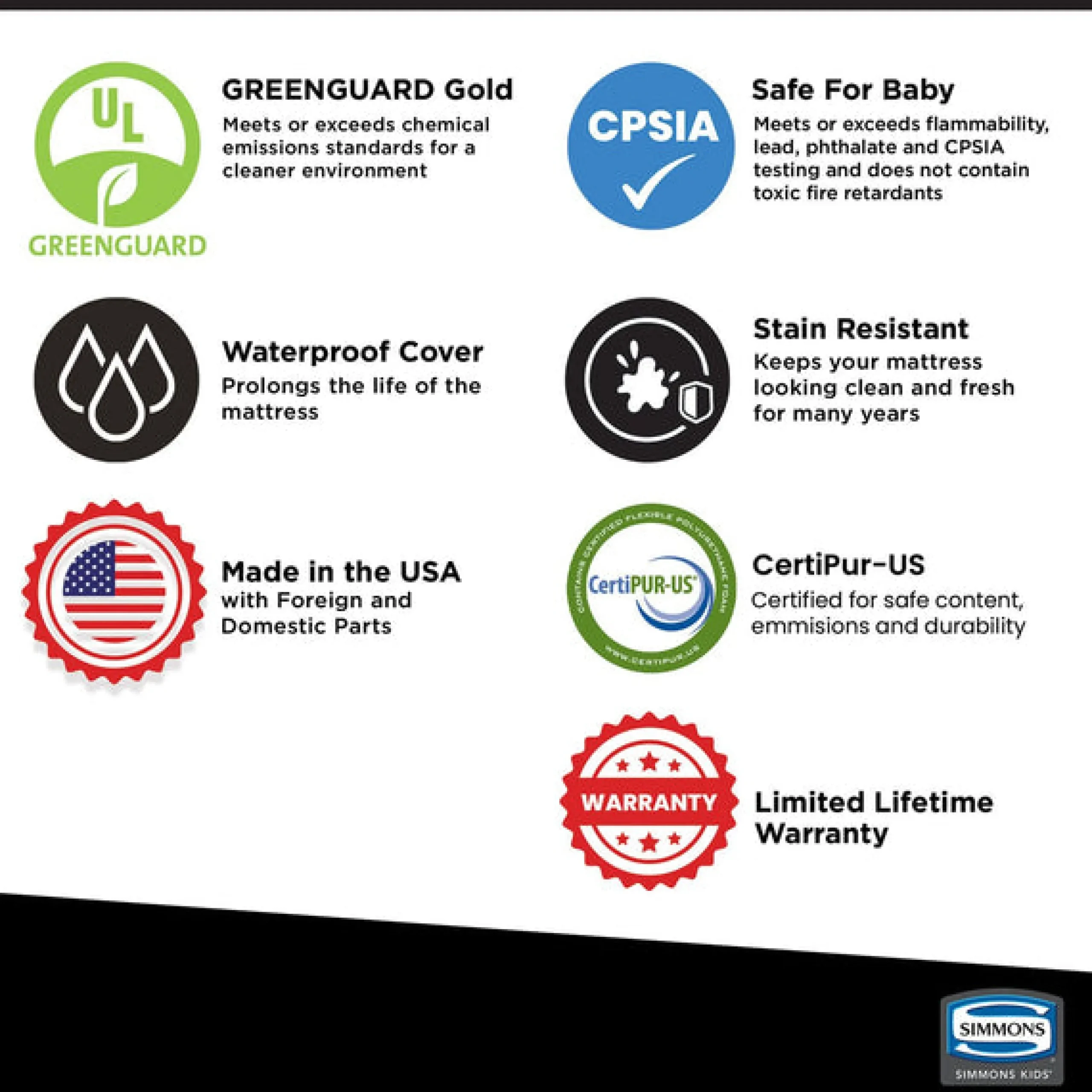 The Beautyrest Black AIRCOOL Two-Stage Crib and Toddler Mattress features innovative technologies to give your child safe, comfortable and restorative sleep. At the core of the mattress, 231 luxury pocketed coils springs provide a firm foundation, while the BeautyEdge foam encasement ensures the mattress is stable all around. Designed to deliver the precise level of support each age range requires, this mattress has two distinct sides—the infant side is the ideal firmness level babies need, and the toddler side features a layer of high performance AirCool gel memory foam to keep your child a comfortable temperature. To help achieve the ideal sleeping experience, this mattress is topped with an Argentum+ woven fabric cover that combines moisture wicking technology with natural silver ion antibacterial properties for a cool, comfortable surface.