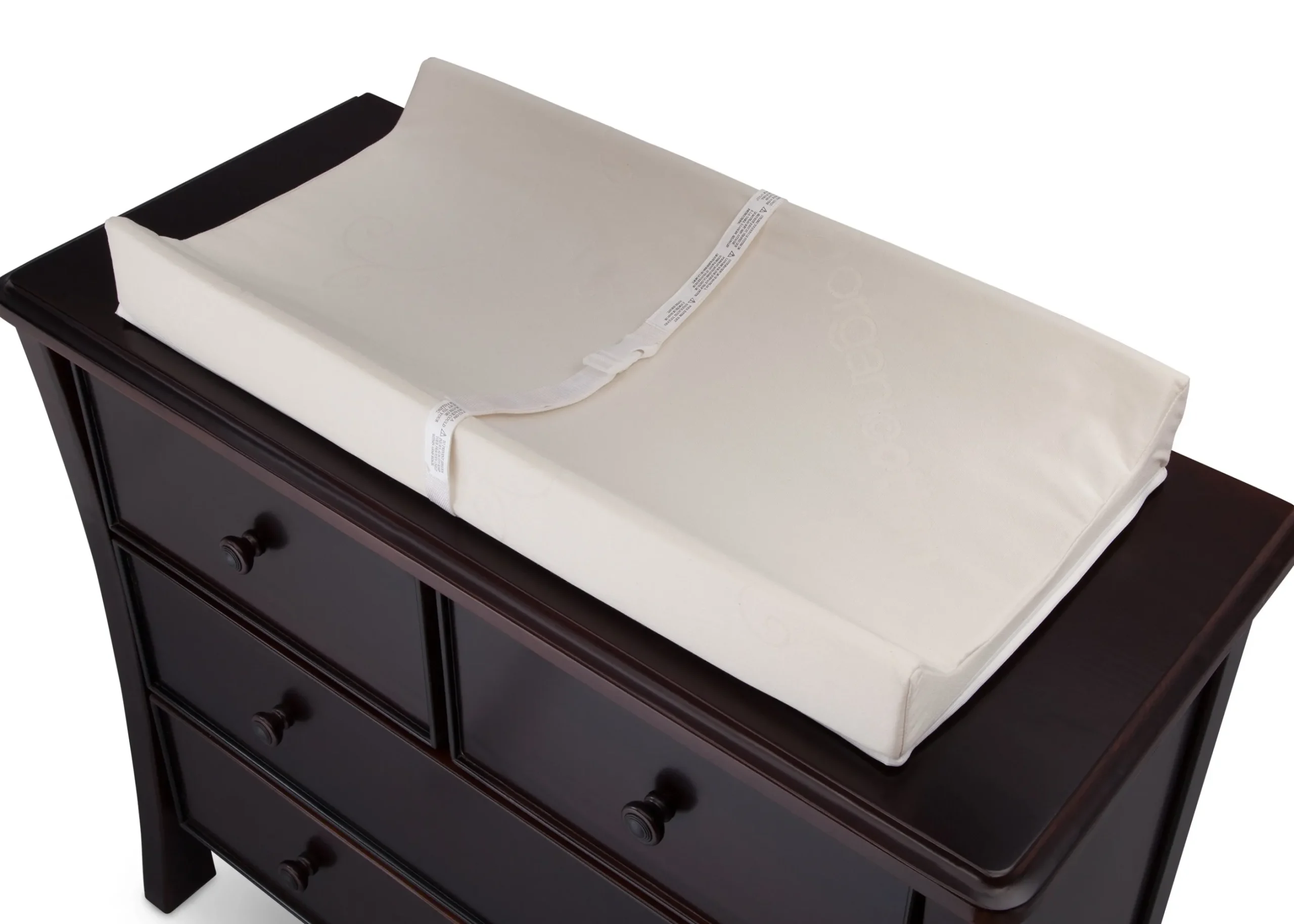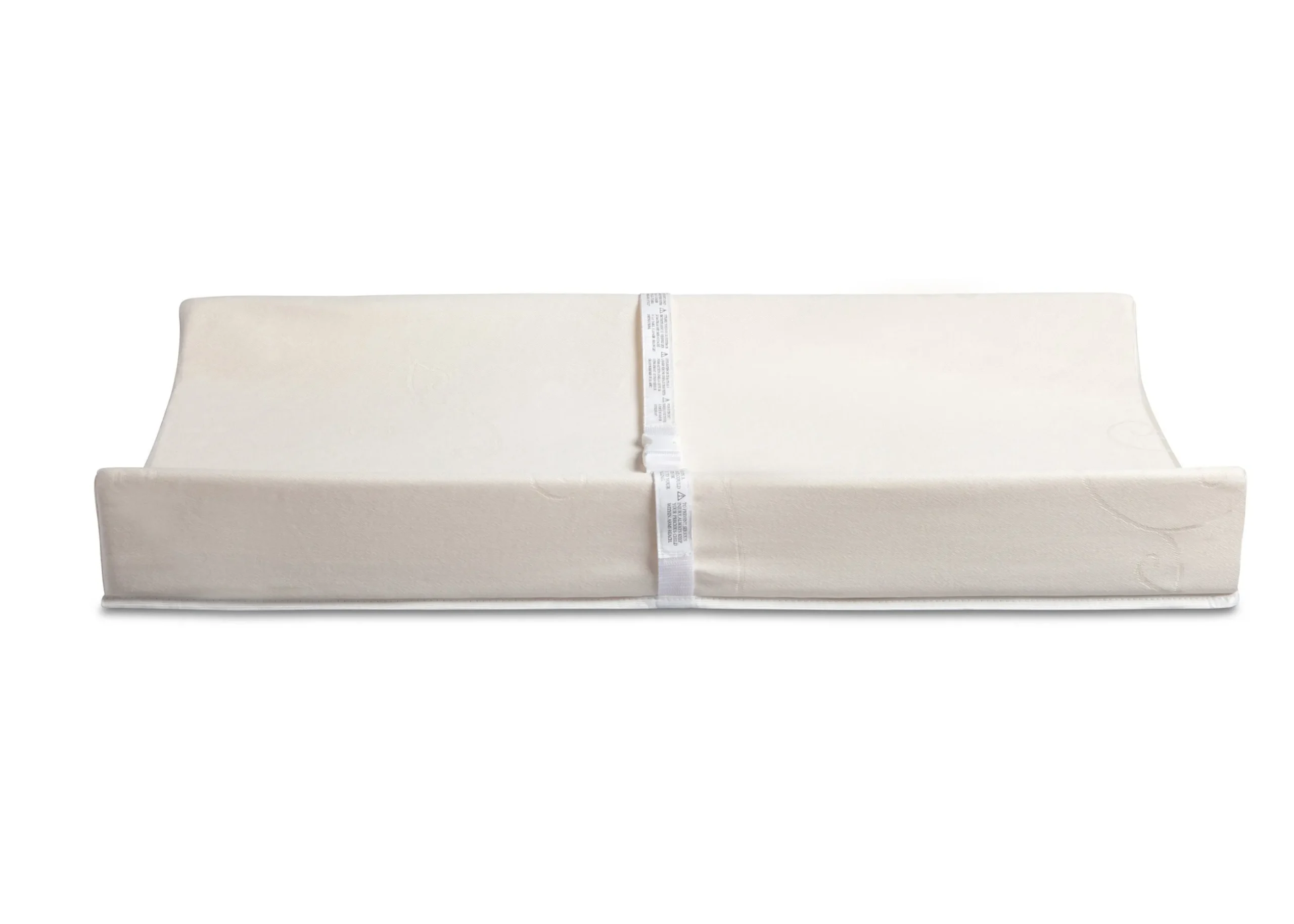 The Beautyrest Natural Contoured Changing Pad takes baby basics one-step further. Made with a natural cotton fabric cover, it provides a pure and soft surface for diaper changes, yet it’s durable enough for everyday use. Outfitted with a contoured design that gently cradles baby, this nursery must-have has a non-slip bottom, safety straps, and easy to use tabs that can be adhered to the dresser or changing table to create a completely secure changing area.