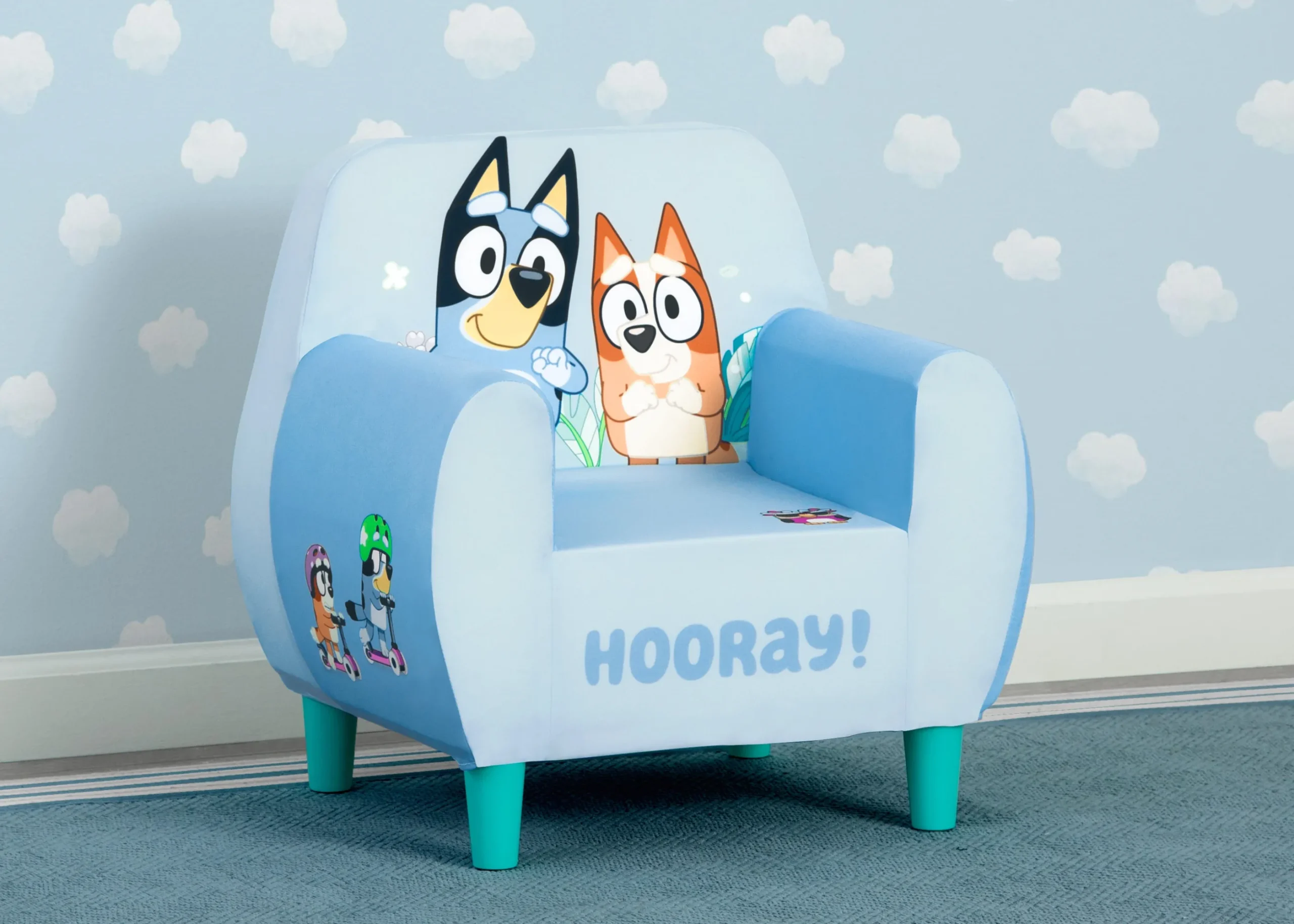 Bring the fun and imaginative play of Bluey home with this Bluey Foam Chair by Delta Children. Ideal for your little Bluey fan, it features bold graphics of Bluey and Bingo. A foam chair with high back and padded arms creates a cozy, kid-sized spot that’s made just for your child, but thanks to modern wood feet it looks great in any room of the house.
