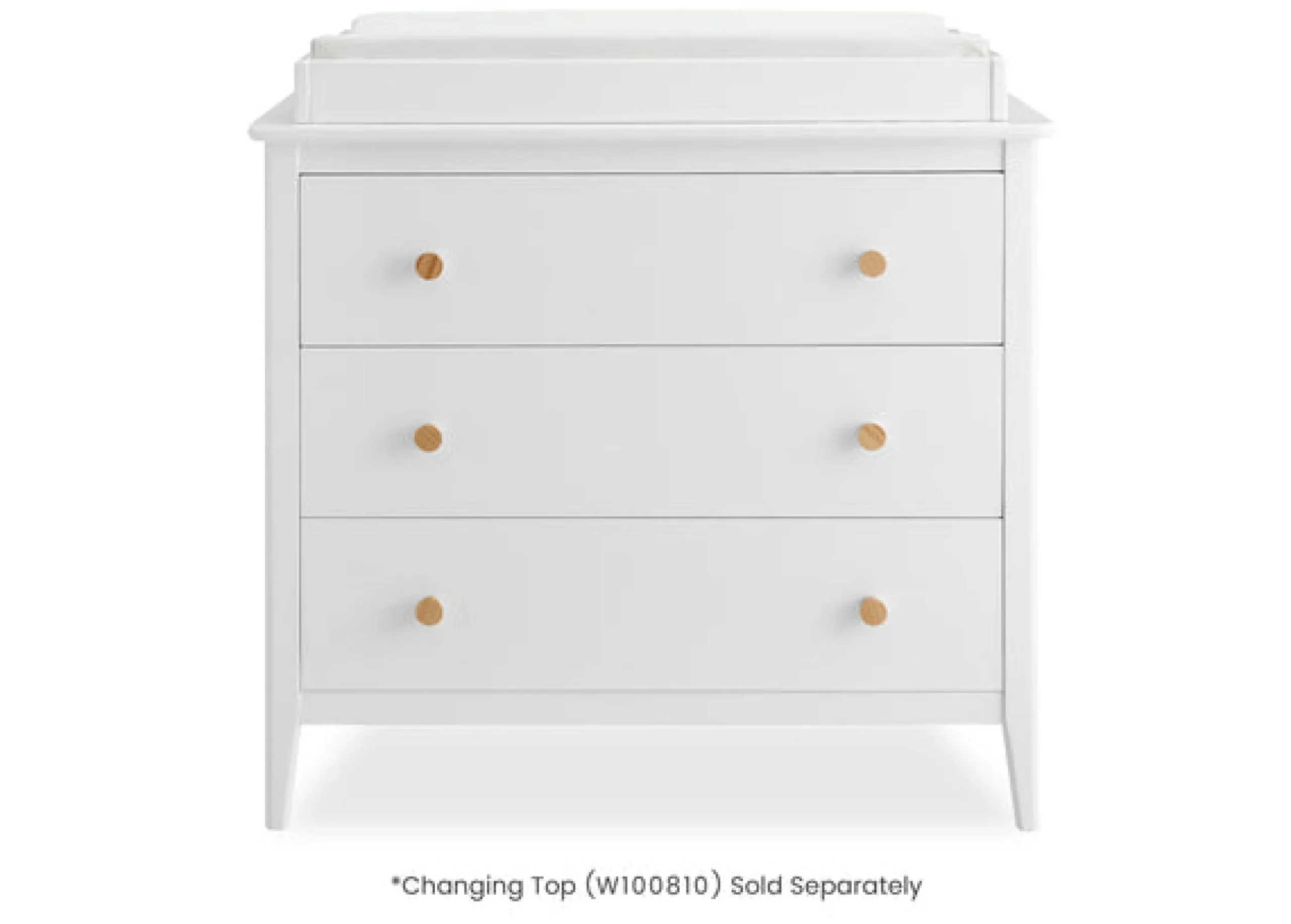 The Casey 3 Drawer Dresser with Interlocking Drawers by Delta Children will instantly elevate your nursery with its mid-century modern style. Clean lines, playful round knobs, and tapered legs define this beautiful dresser. For your child’s safety, this dresser is outfitted with and interlocking drawer system that limits the number of drawers that can be opened at one time. Pair this dresser with other pieces in the Casey Collection for a coordinated look, as well as the coordinating Changing Top #W100810 (sold separately) to transform this dresser into a convenient changing table.This Delta Children dresser is tested to meet the current requirements of ASTM F2057, the mandatory CPSC safety standard that protects young children from furniture tip-over incidents. For your children’s safety, only purchase dressers that comply with this standard. For additional security, Delta Children strongly recommends that all dressers in your home be anchored; all Delta dressers include a wall anchor. To learn how to properly secure your dresser, please see the product assembly instructions or visit our website.”