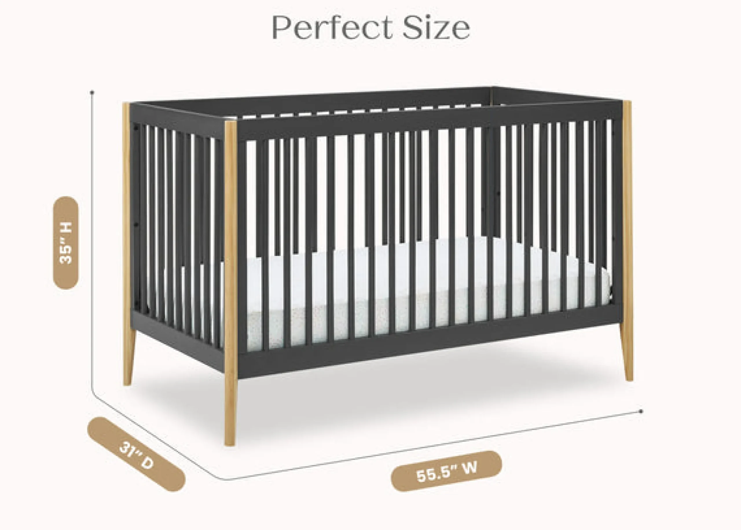- Uses a standard size crib mattress (sold separately)