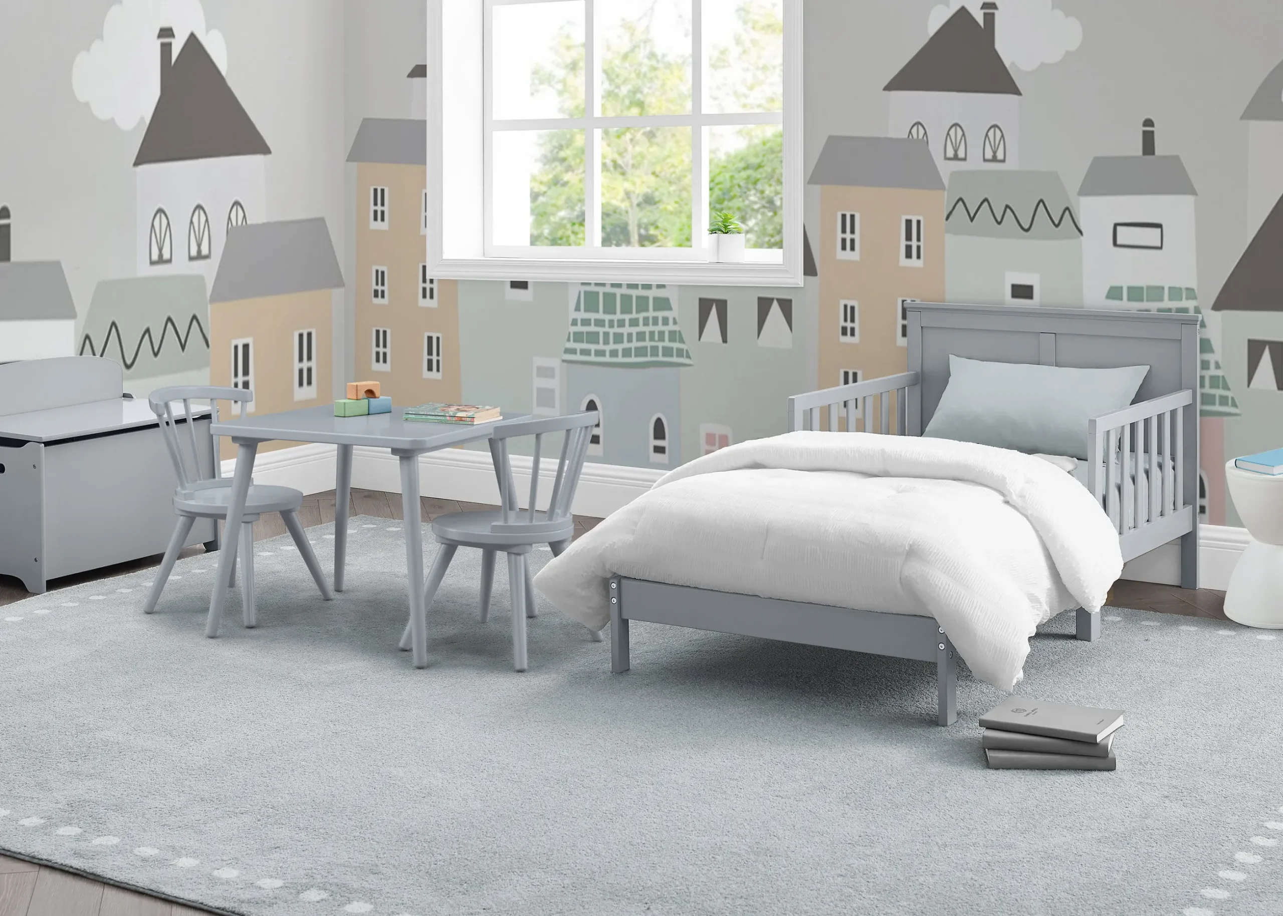 Add timeless style to your child’s bedroom with the Collins Wood Toddler Bed by Delta Children. The bed’s tall headboard with decorative molding creates a cozy oasis for your little one. The perfect choice for your growing child, this toddler bed is extremely safe with its two attached guardrails and a low height that makes it easy for kids to get in and out on their own. Mattresses not included.