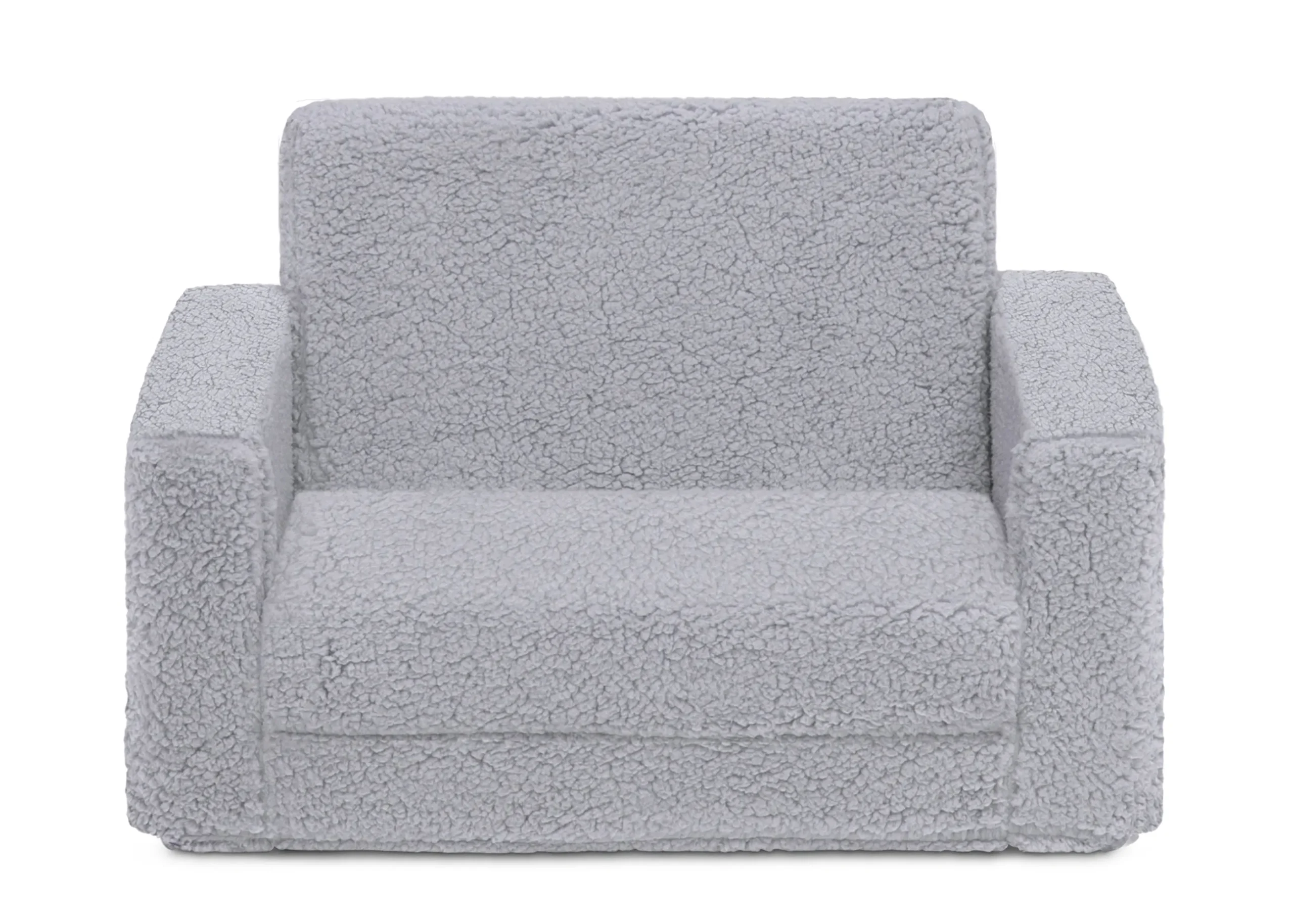 The Cozee Flip-Out Sherpa 2-in-1 Convertible Chair to Lounger by Delta Children is a cozy chair by day, laid-back lounger by night. This convertible seat easily flips open to reveal multiple ways for your child to relax–they’ll love to sit and read or watch their favorite movies on the chair but when it’s time for a nap, this seat folds out into a comfy sleeper bed. Big enough to fit two small kids comfortably in chair mode, it’s light enough to move around the house and is ideal for your children to share during playtime or sleepovers. The super-soft Sherpa slipcover with easy-to-reach side pocket creates the ultimate retreat for your little one. The supportive foam construction will keep its shape and provides all-day comfort. Designed to ship in a super-small box, this lightweight foam kids’ chair and lounger may take up to 24 hours to fully expand once unboxed. Machine-washable slipcover zips off for easy cleaning. Recommended for ages 18 months+.