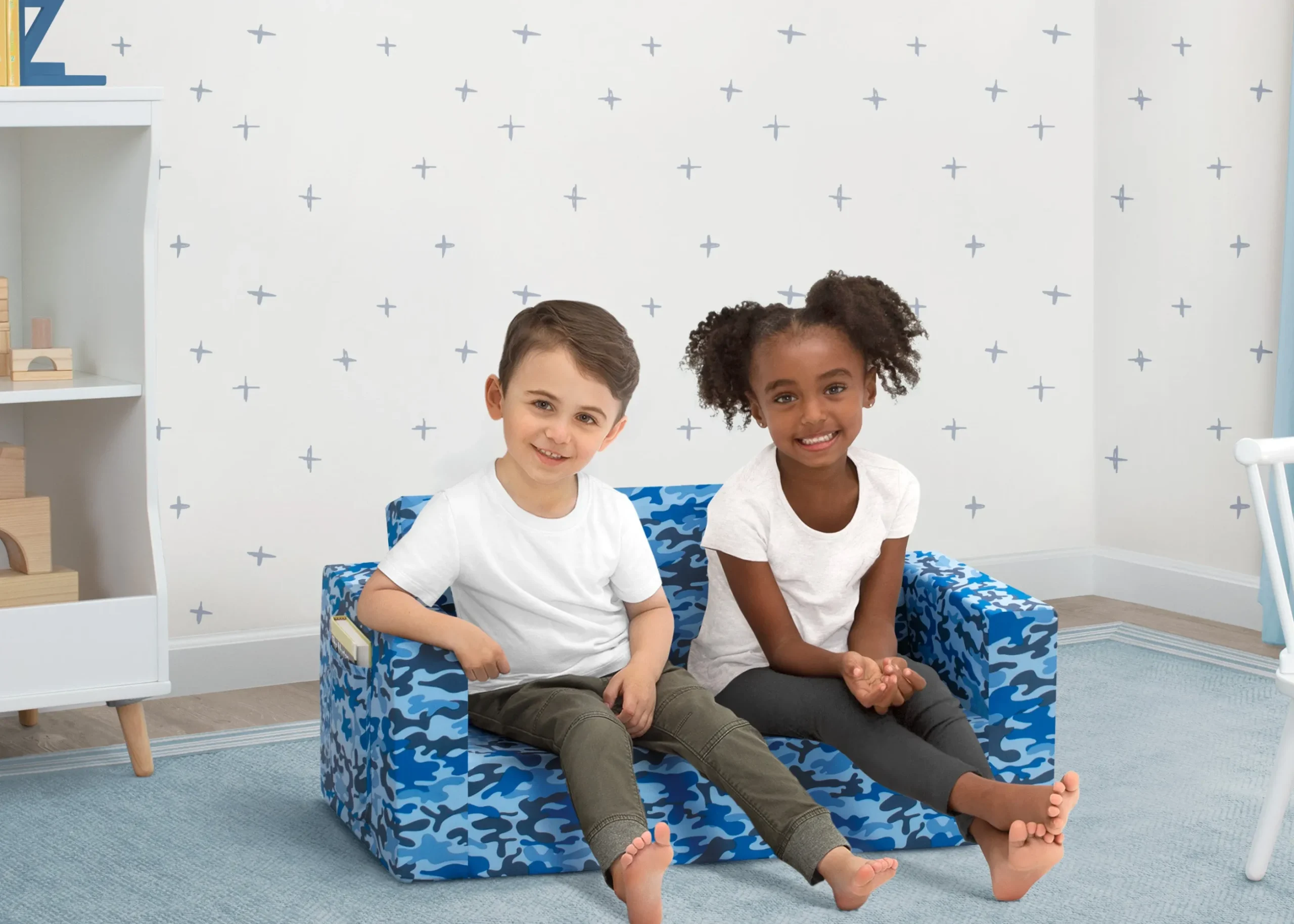 The Cozee Flip-Out 2-in-1 Convertible Sofa to Lounger by Delta Children is a cozy chair by day, laid-back lounger by night. This convertible seat easily flips open to reveal multiple ways for your child to relax–they’ll love to sit and read or watch their favorite movies on the chair but when it’s time for a nap, this seat folds out into a comfy sleeper bed. Big enough to fit three small kids comfortably in sofa mode, it’s light enough to move around the house and is ideal for your children to share during playtime or sleepovers. The super-soft slipcover with easy-to-reach side pocket is treated with Scotchgard stain release finish to resist stains, ensuring the sofa looks beautiful for years to come! The supportive foam construction will keep its shape and provides all-day comfort. Designed to ship in a super-small box, this lightweight foam kids’ sofa and lounger may take up to 24 hours to fully expand once unboxed. Machine-washable slipcover zips off for easy cleaning. Recommended for ages 18 months+.