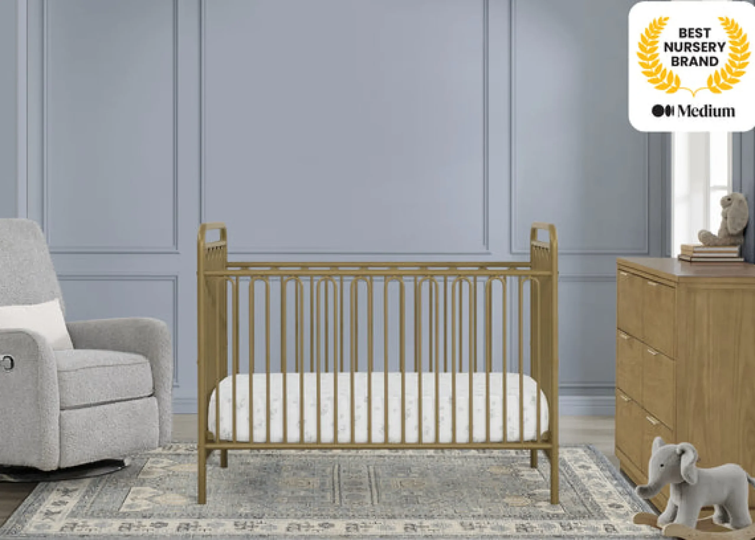 Design your dream nursery with the Darcy 4-in-1 Convertible Metal Crib by Delta Children. Beautifully crafted of premium steel, this vintage-inspired crib with simple curves and round spindles looks like a cherished heirloom but has all the modern features your growing baby needs. Designed to easily convert into a toddler bed, daybed and sofa as your child grows, you can keep this classic look for years to come (Daybed/Sofa Conversion included; Toddler Guardrail #W106725 sold separately). With three mattress positions that easily lower as your baby begins to sit, pull up and stand, you can find the height that’s best for them at every stage. The Darcy 4-in-1 Metal Convertible Crib is designed to fit a standard-size crib mattress (sold separately) and is JPMA Certified to meet or exceed all safety standards set by the CPSC and ASTM.