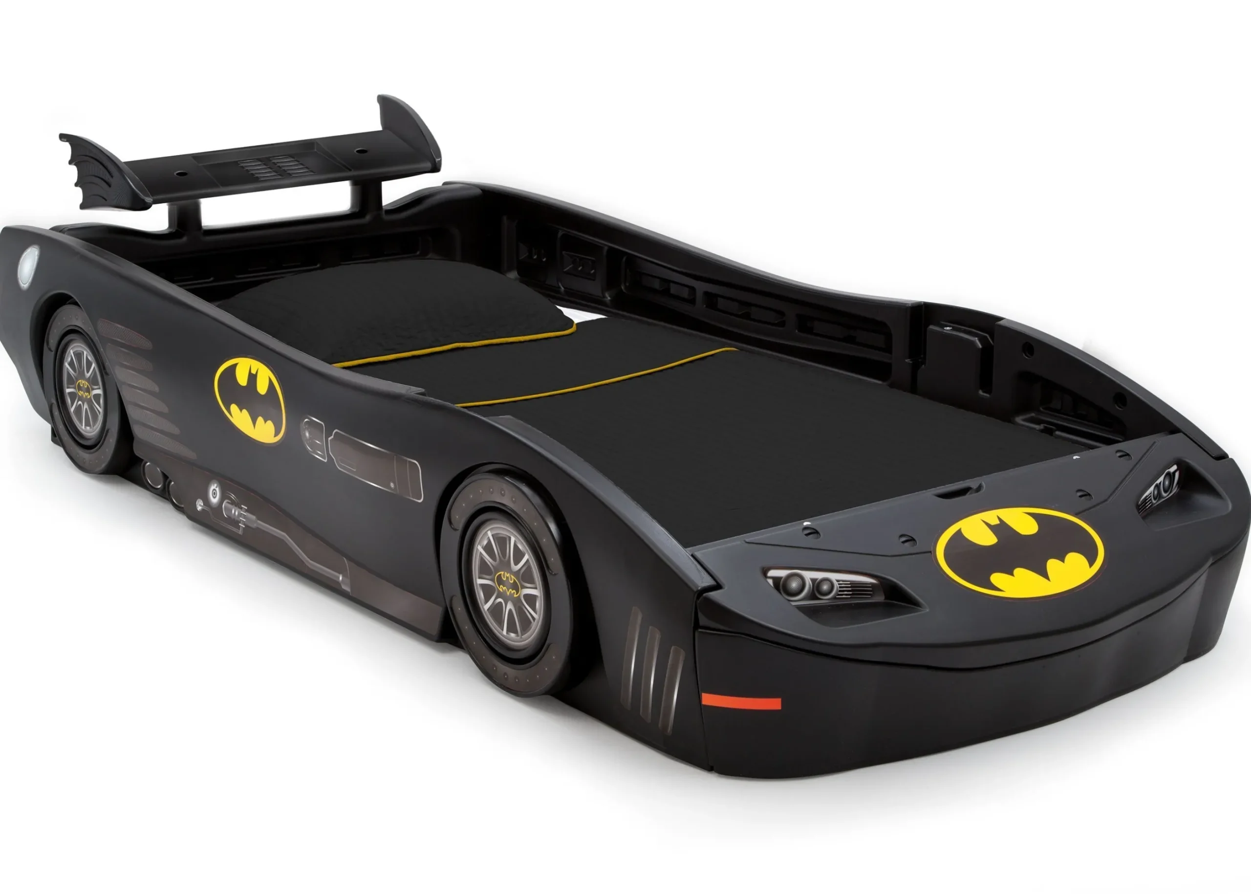 Little Caped Crusaders can zoom off to Gotham City with the Batmobile Twin Bed! Designed to resemble Batman’s signature ride and made of durable molded plastic, this sleek bed is just what your Bat Cave needs.