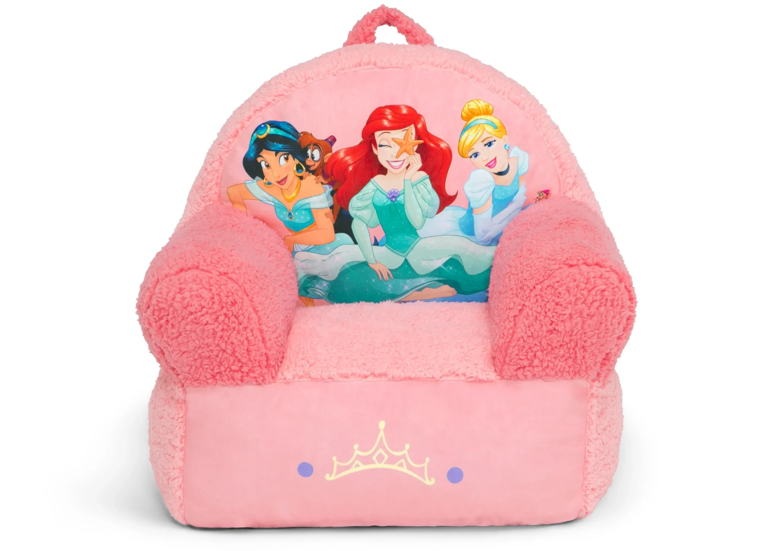 Kids can snuggle up with their favorite character with the Disney Princess Cozee Buddy Chair by Delta Children! This plush chair features colorful Disney Princess graphics of Ariel, Jasmine and Cinderella, super-soft fabric and a handle that makes it easy to move around the house! The foam design of this comfy chair offers kids a cozy companion for reading, relaxing or snuggling, making it perfect for playrooms and kids’ bedrooms.