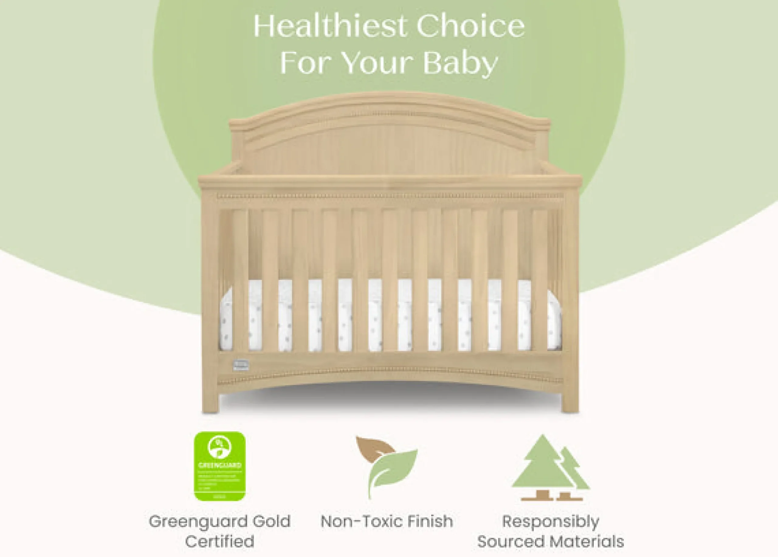 This crib meets or exceeds the most stringent chemical emissions standards to create a healthier home for your child. It has been screened for more than 10,000 chemicals and VOCs that are known to pollute indoor air, certifying it contributes to cleaner indoor air. When you buy this crib, you can feel good about what you’re putting in your child’s bedroom
