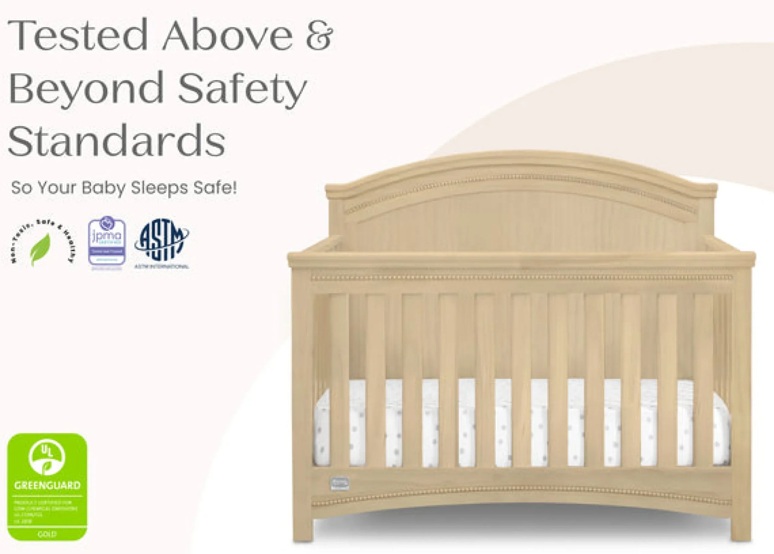 This crib is JPMA certified to meet or exceed all safety standards set by the CPSC & ASTM. We know chemicals have no place in your nursery, so we use a non-toxic multi-step painting process that is lead and phthalate safe. Made of sustainable woods like New Zealand pine wood, poplar and TSCA compliant engineered wood