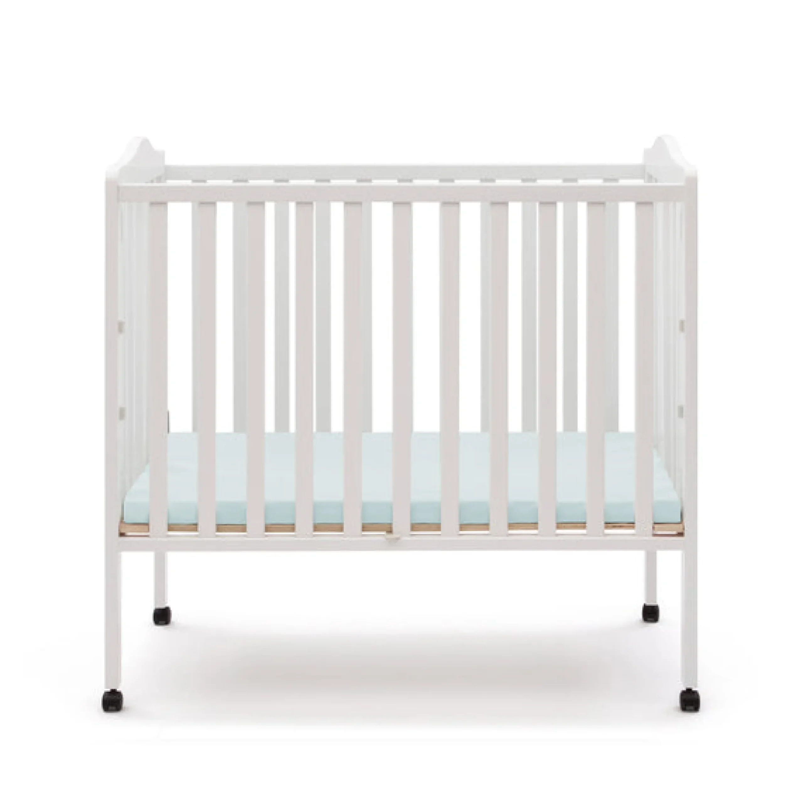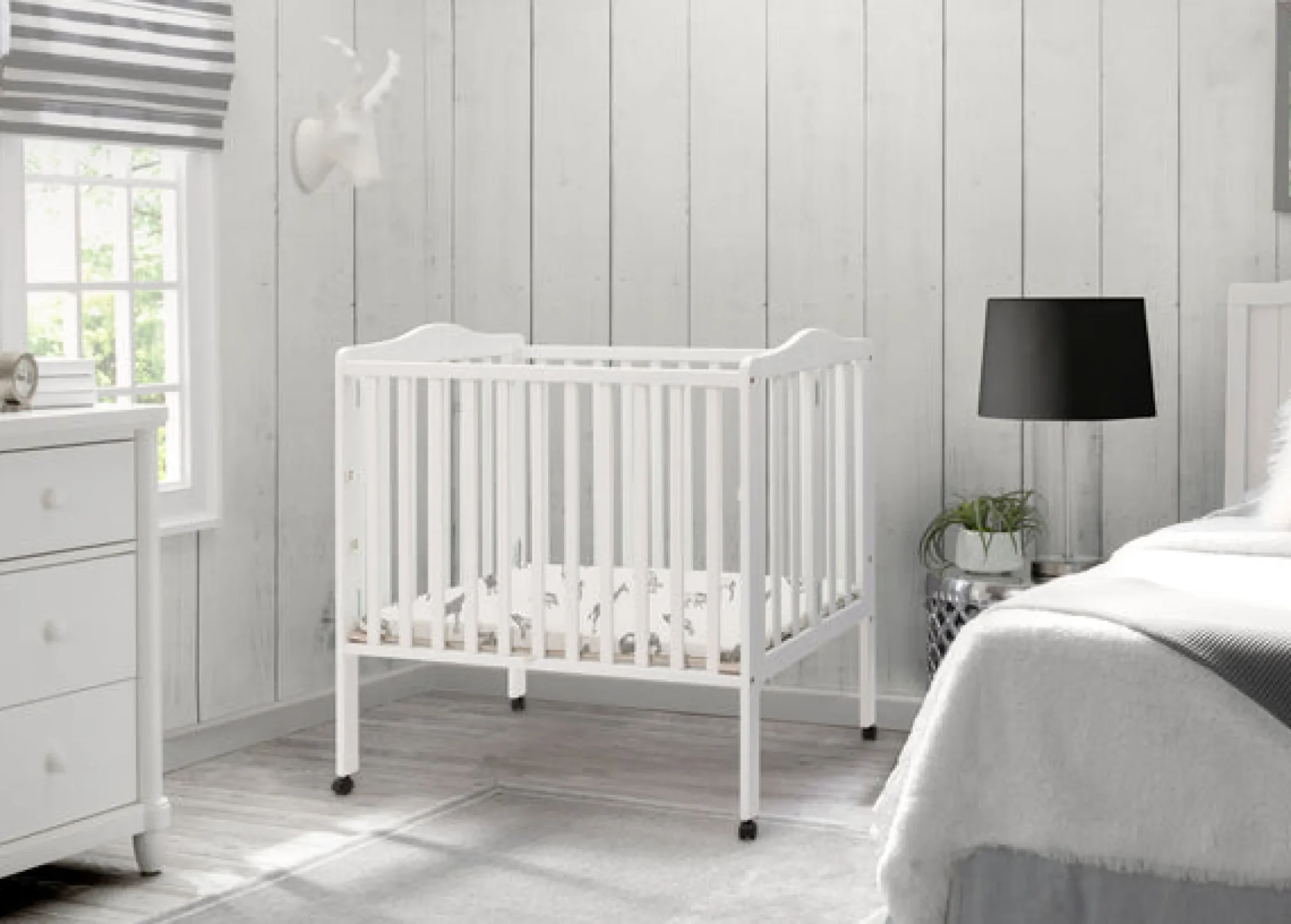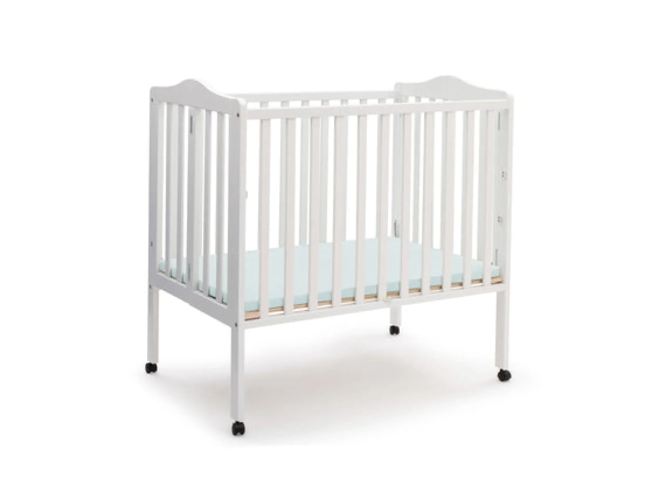 Great for small spaces or as a travel crib, the Portable Folding Crib with Mattress from Delta Children is well built and versatile. Its rolling casters allow for easy movement throughout the home, so you can keep your baby nearby at all times. And, when you’re on the go, it’s easier than ever to provide a safe and comfy sleep space for your little one. Made from durable wood, it easily folds up, making it perfect for transport. Designed for convenience, the Portable Folding Crib with Mattress from Delta Children includes everything needed for a good night’s sleep.