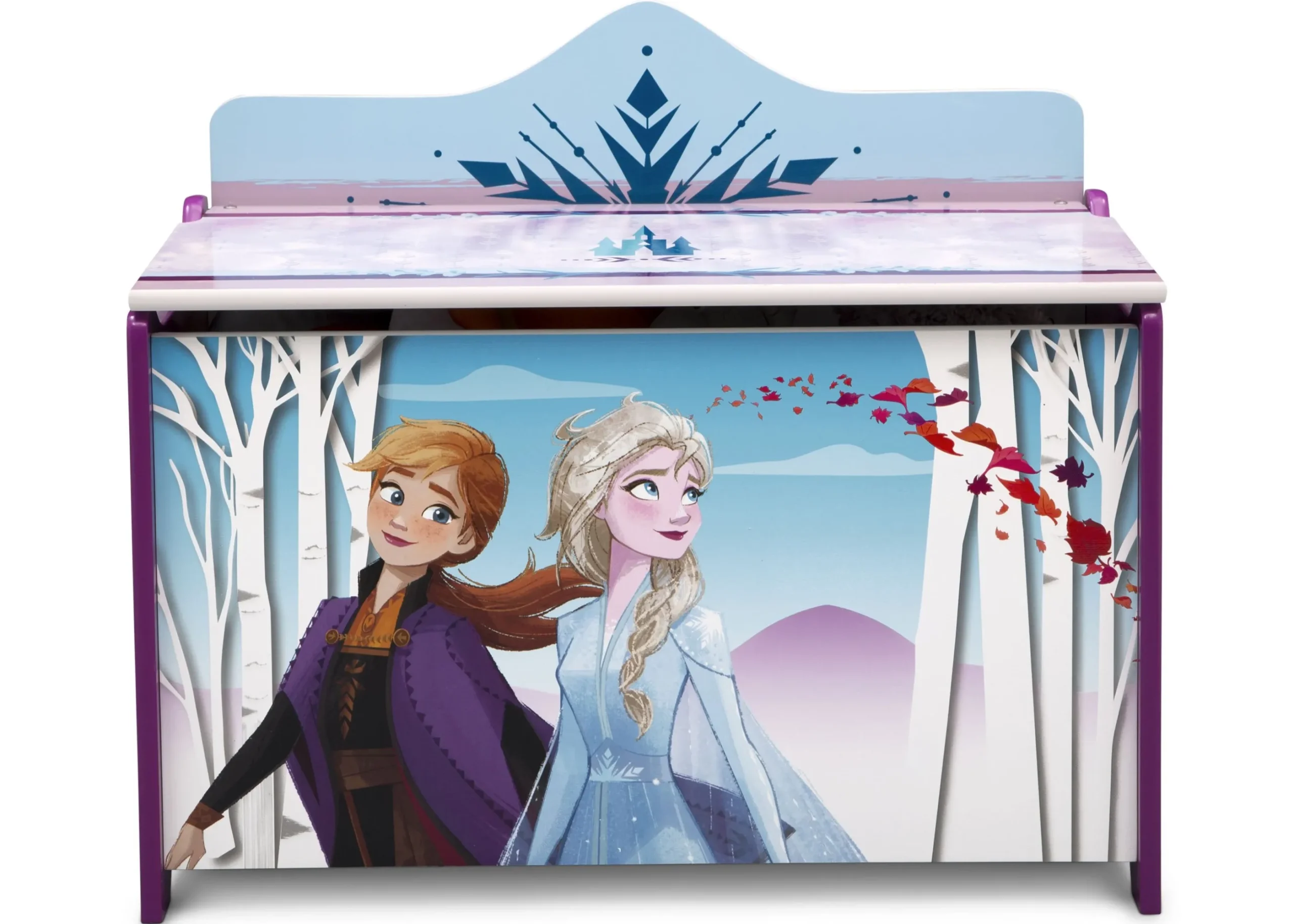 Cleaning up is a breeze with this Disney Frozen II Deluxe Toy Box by Delta Children! Perfect for keeping your little one’s toys, dress up clothes or games organized, this sturdy storage piece features a spacious interior and durable wood construction with rounded corners, smooth edges and a slow-closing lid for your little one’s safety. Adorned with colorful graphics of Anna, Elsa Kristoff and Sven, it showcases everyone’s favorite Frozen characters.