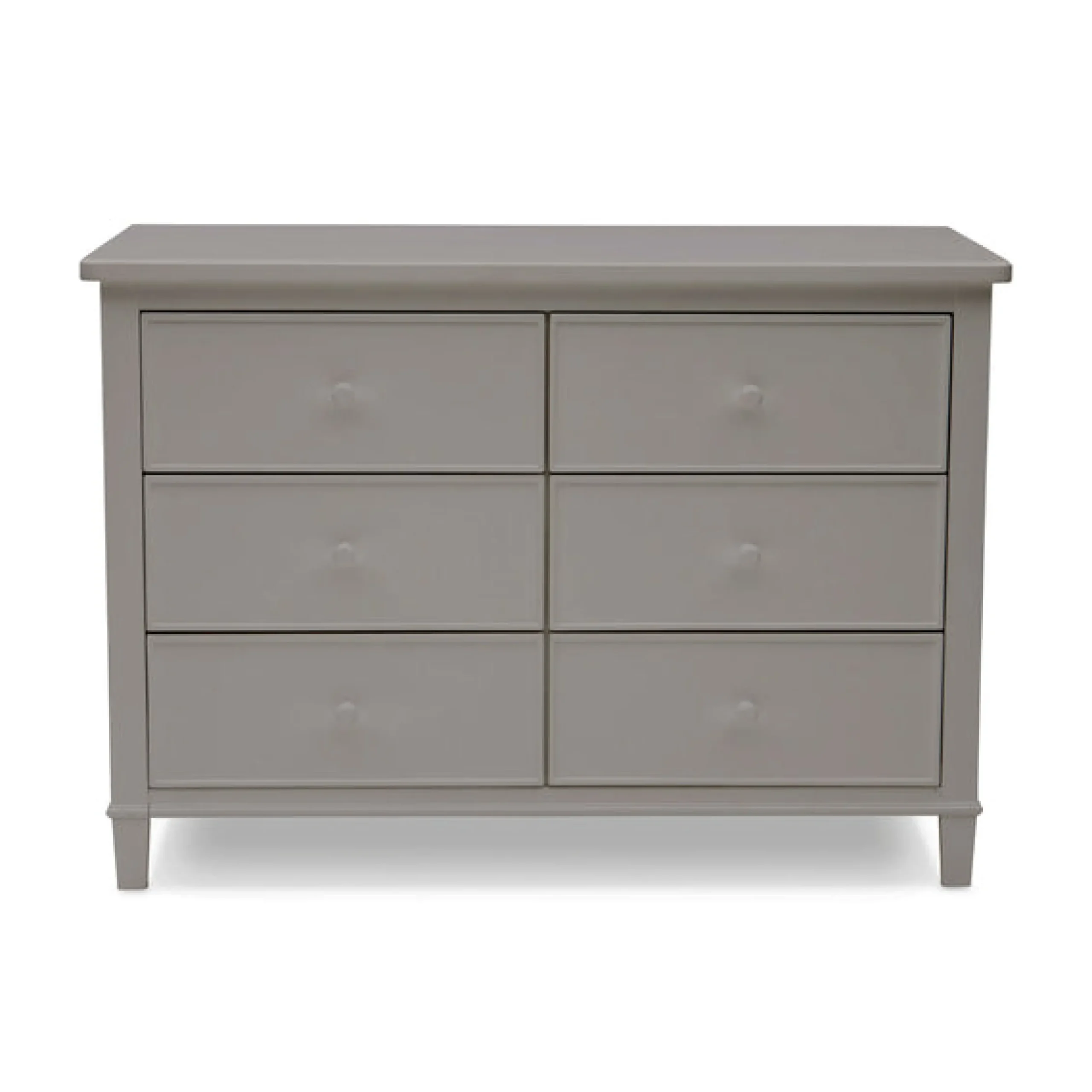 This dresser features 6 drawers for plenty of storage space. To convert your dresser into a convenient changing table purchase the Delta Children #0550 Topper (sold separately)