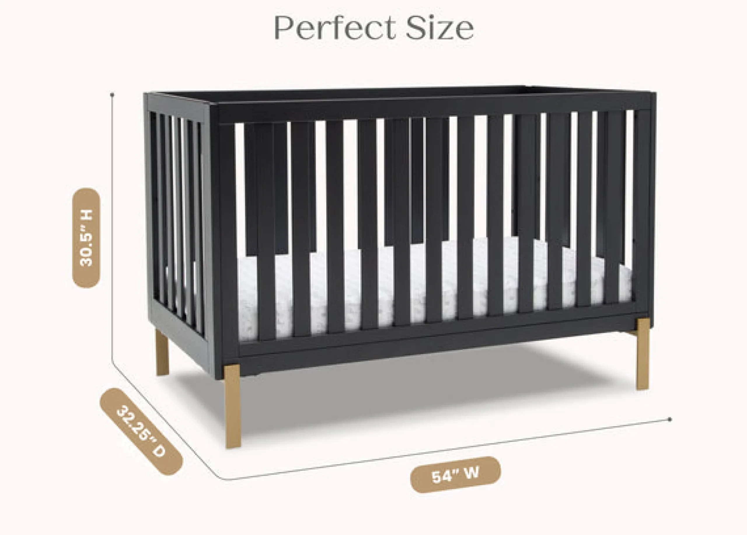 - Uses a standard size crib mattress (sold separately)
