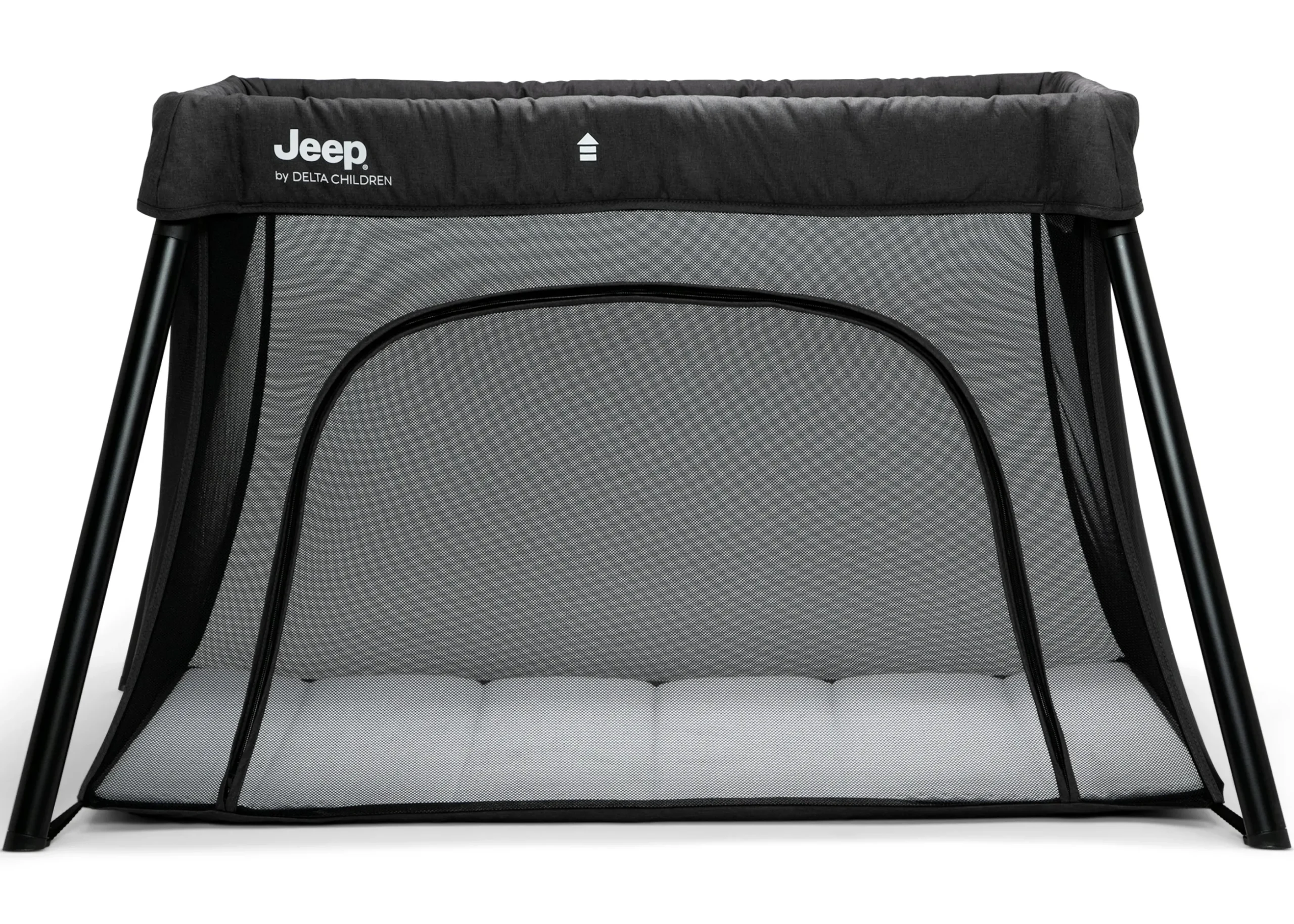 Whether you’re flying, driving, or staying at home, the Jeep Horizon Compact Travel 2-in-1 Play Yard and Bassinet by Delta Children is your portable nursery solution. This portable play yard with a removable bassinet insert offers peace of mind, providing a secure and cozy space for your baby to play and sleep. The water-resistant play area keeps your child in a safe, nearby space whether at home or on the go. Airy mesh netting on all sides allows for maximum ventilation and provides a clear view. An easy-to-open front zipper door provides quick and easy access to your baby. Outfitted with a compact fold, this airport-friendly play yard includes a carry bag that makes travel and storage easy.