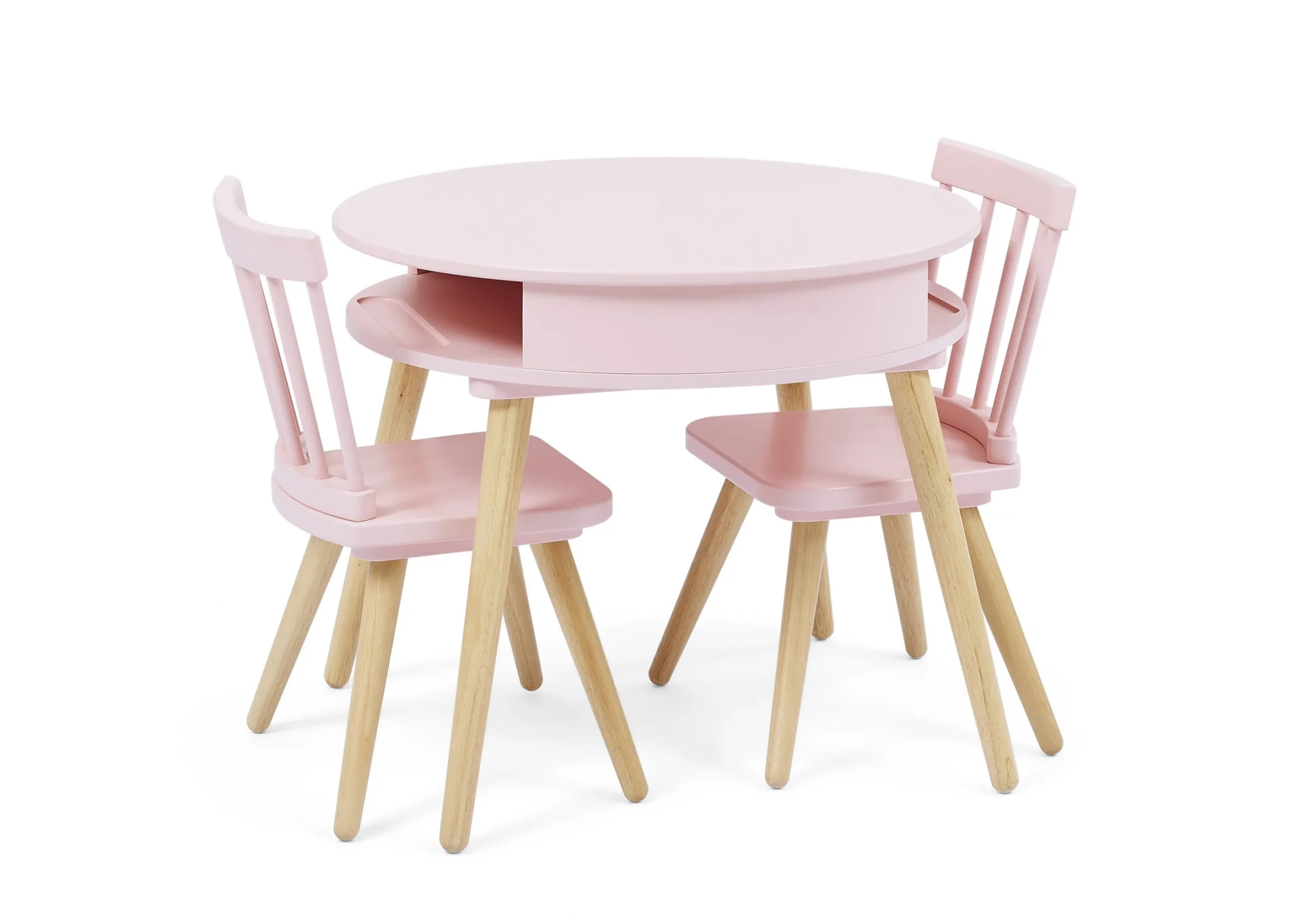 The Hudson Storage Table & 2-Piece Chair Set for Kids by Delta Children is a modern playroom essential where little ones can carve out a space of their own to read, eat or create. The set features a two-tone look, giving it a neutral aesthetic that can coordinate anywhere in the house. A built-in cubby compartment under the tabletop that can be used to hold your child’s toys, art supplies, books and more provides easy-to-access storage. Plus, this table and chair set is GREENGUARD Gold Certified, which means it’s built to contribute to safer, healthier indoor air.