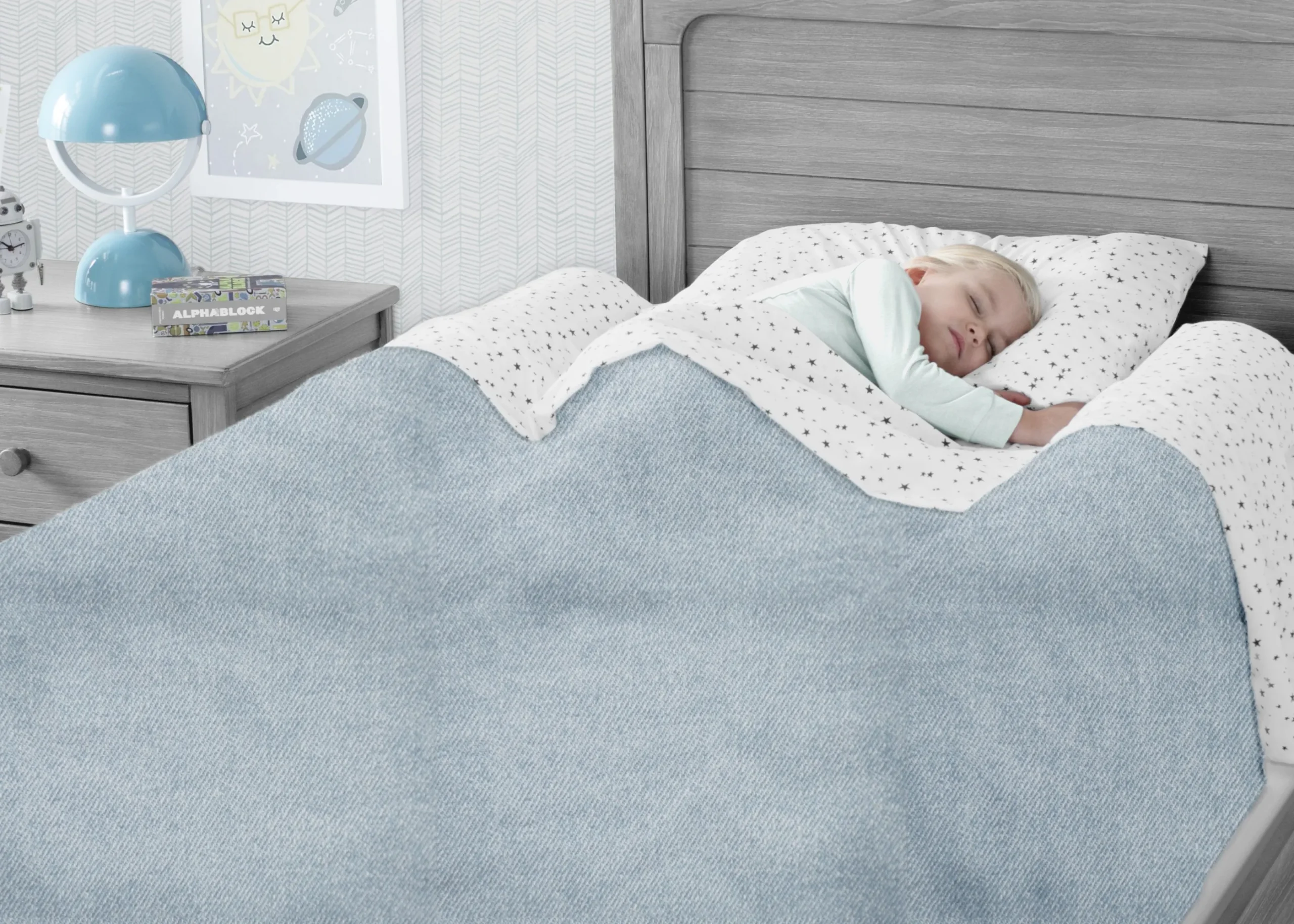 Make the transition from crib to big-kid bed easier than ever with this Pack of 2 Inflatable Bed Rails with Foot Pump by Delta Children! A safe and simple way to transition toddlers from their baby crib to a big bed, these inflatable bed rails prevent your child from falling or rolling off the bed by providing a gentle reminder they are near the edge. Great to use at home or while traveling, these bed rails feature a secure seal that prevents leaks and are easy to inflate thanks to the provided foot pump. Lightweight and compact, the small foot pump inflates the bedrails in under a minute. Slide the inflated rails under your fitted sheets, the non-slip strips ensure they stay in place throughout the night. Measuring 48″L x 7″W x 5″H, the compact and lightweight bedrails only weight 1.54 pounds. To save up space in your closet or luggage, deflate and roll this set of guard rails when not in use (it measures 6.3″L x 5.5″W x 1.2″D when folded up). Age recommendation: 24 months+. This Pack of 2 Inflatable Bed Rails with Foot Pump by Delta Children is everything you need for a peaceful night’s sleep.