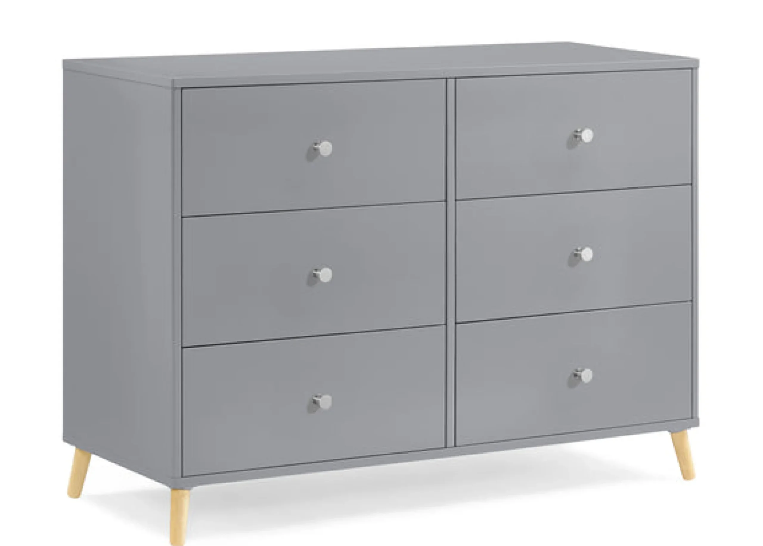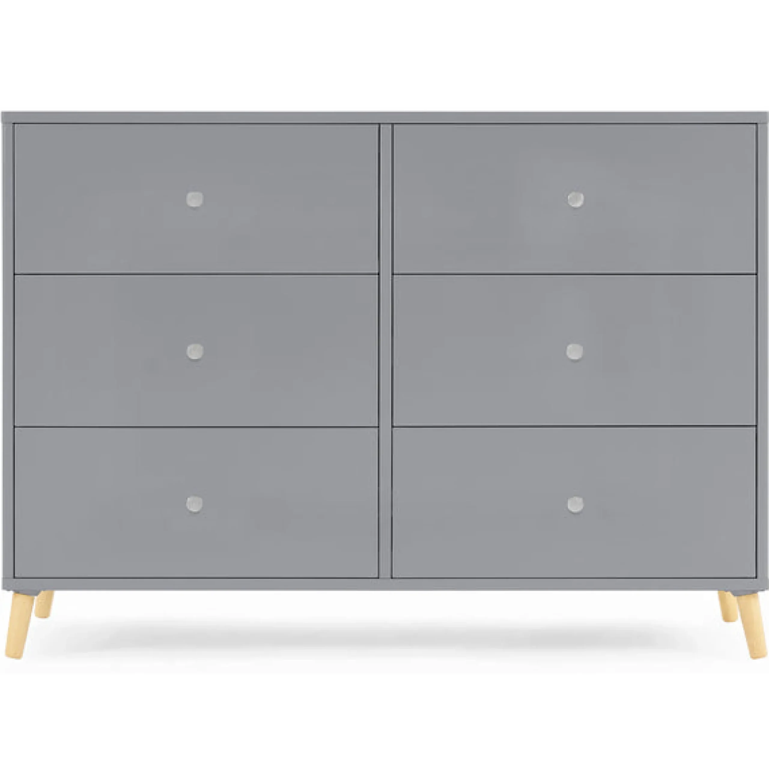 Designed to elevate modern nurseries or bedrooms,the Jordan 6 Drawer Dresser is the perfect accompaniment to your Jordan 4-in-1 Crib with its angled feet and two-toned detailing