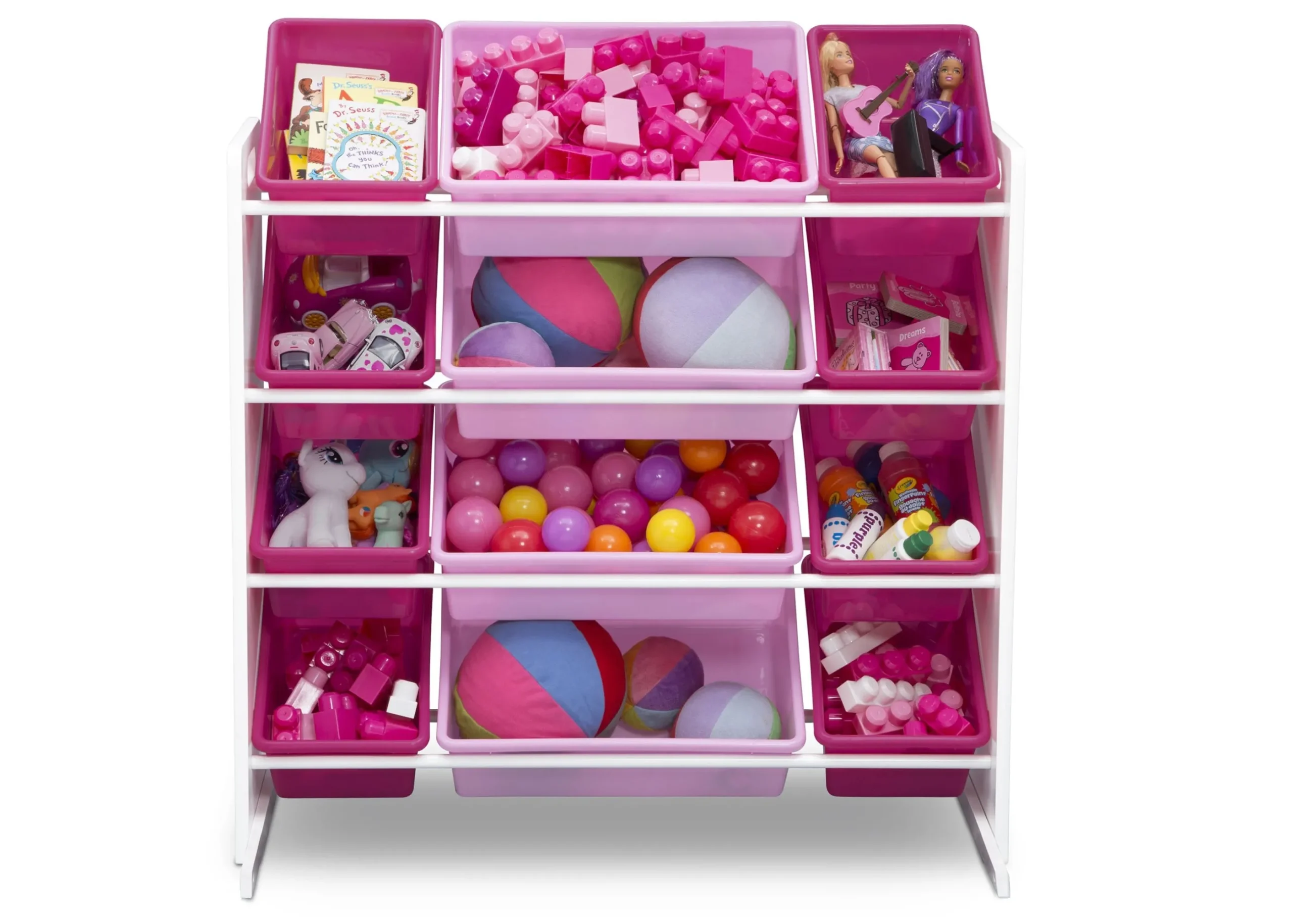 Store and organize toys, books, art supplies, dress-up clothes and more with our Kids Toy Storage Organizer. This storage unit features 12 sturdy bins in two sizes and will help organize any room in your house.