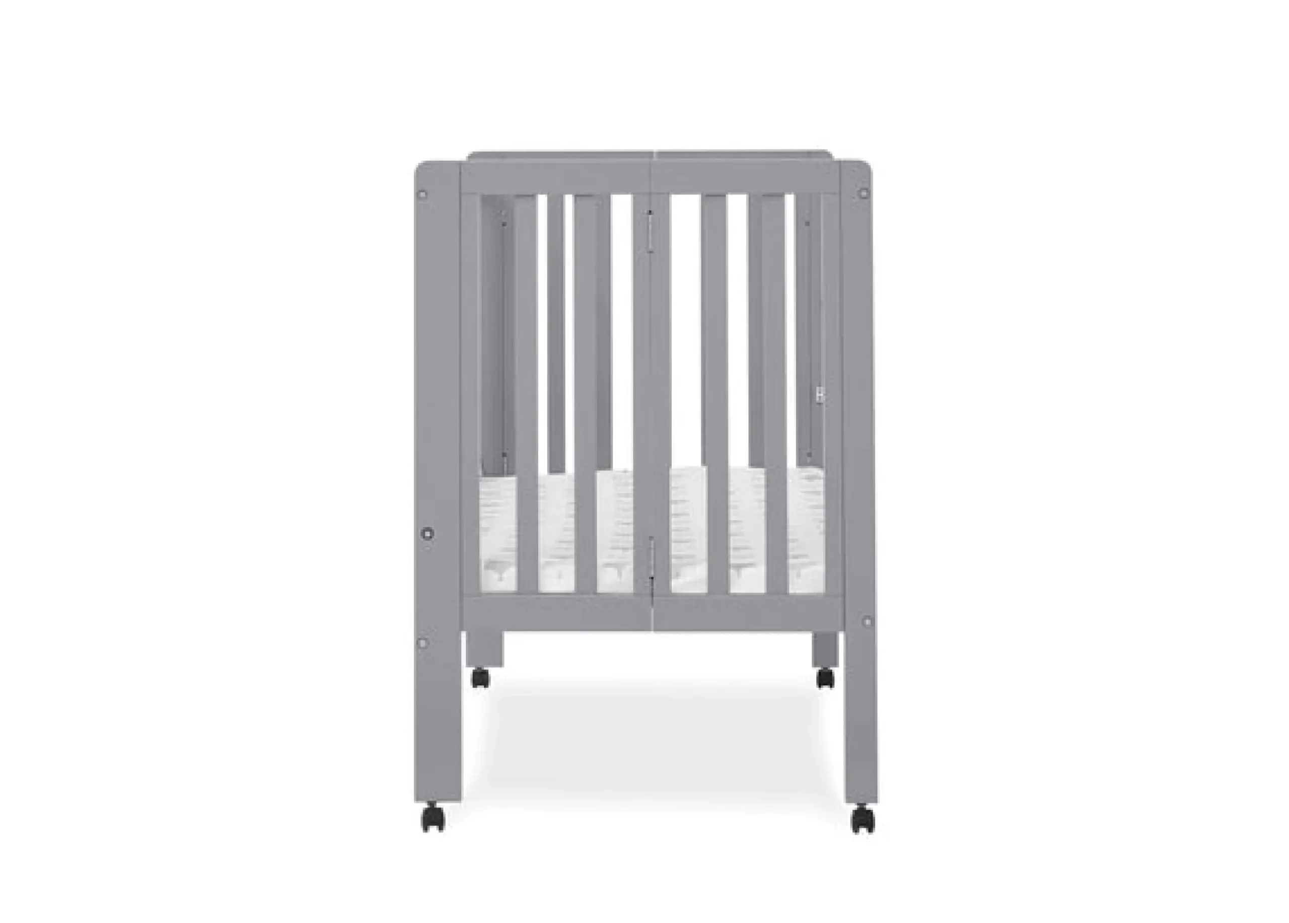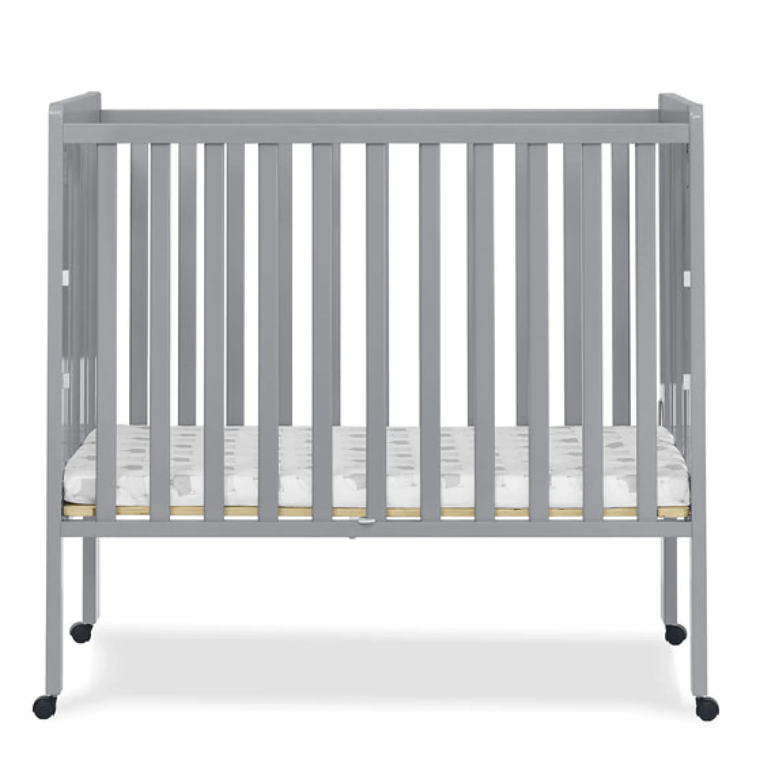 Designed for modern families, the Lee Portable Folding Mini Crib with 1.5-Inch Mattress is great for small spaces, shared bedrooms or overnight trips. Its small footprint and wheels allow for easy movement throughout the home. The easy-fold construction makes storage or transport super simple