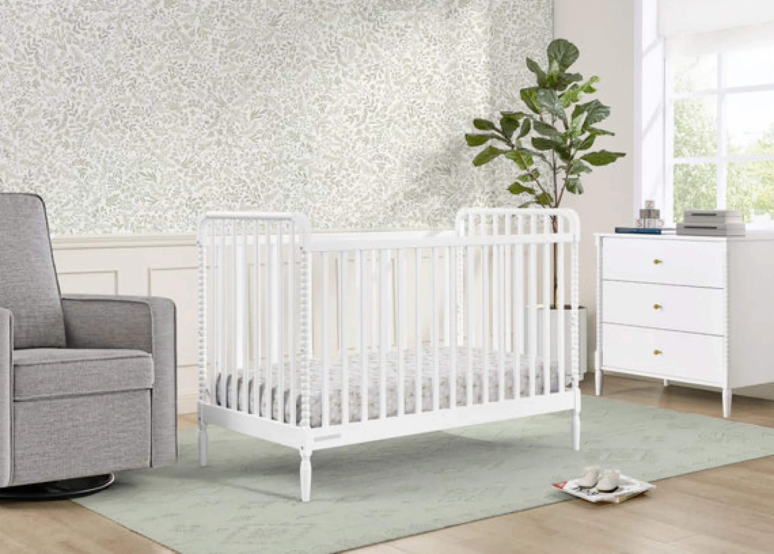 Set the foundation for a charming and sophisticated nursery with the Lily 4-in-1 Convertible Crib by Delta Children. Featuring intricate wood turnings and an airy, slat construction, this Jenny Lind-inspired crib is a forever classic. A versatile piece that adjusts to your baby’s growth, this crib has three mattress heights, and transitions to a toddler bed, daybed and sofa when paired with the conversion kit (sold separately). Plus, the Lily 4-in-1 Convertible Crib is GREENGUARD Gold Certified, which means it’s built to contribute to cleaner air for a healthy home. Available in Bianca White and Walnut Espresso. Crib mattress sold separately. To complete the look, pair this crib with the coordinating Lily 3 Drawer Dresser.