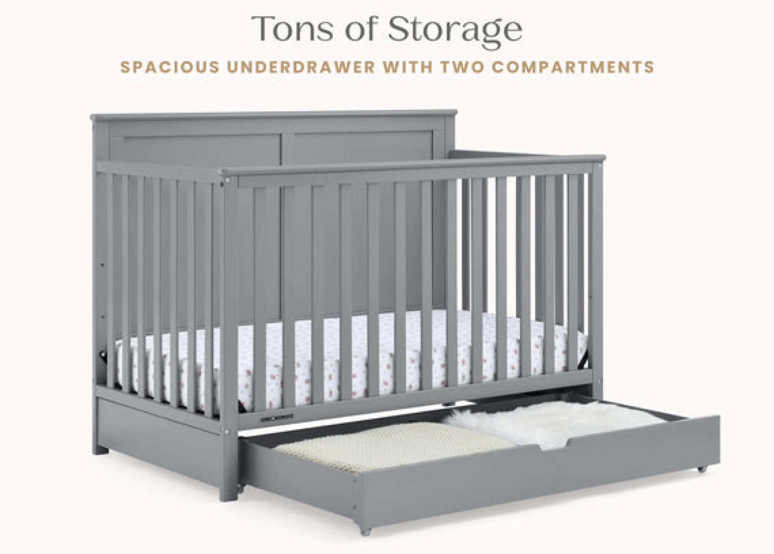 Outfitted with a spacious drawer with two compartments for all your storage needs, this crib allows you to keep clothing and essentials close at hand