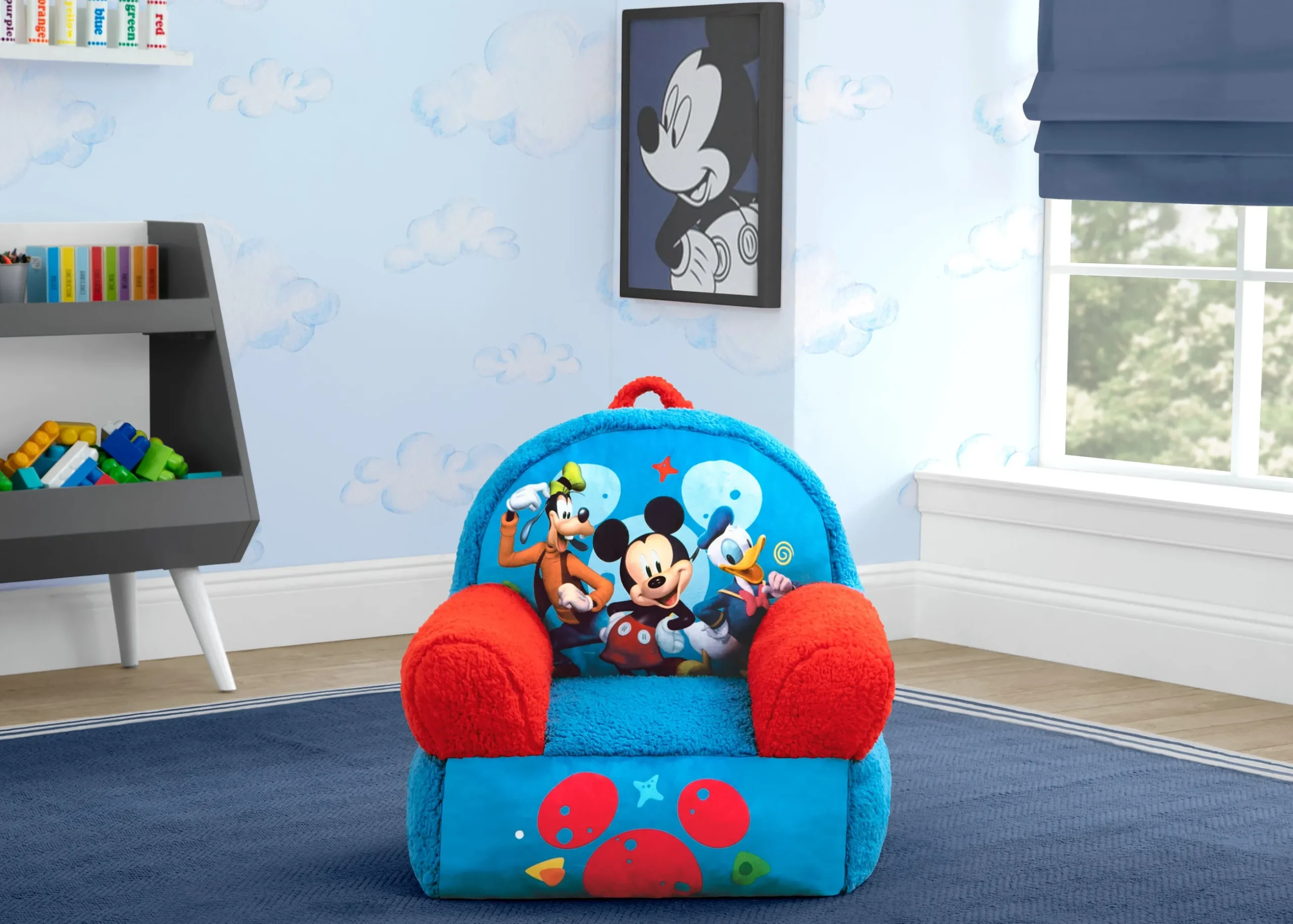 Kids can snuggle up with their favorite character with the Disney Mickey Mouse Cozee Buddy Chair by Delta Children! This plush chair features colorful Mickey Mouse graphics, super-soft fabric and a handle that makes it easy to move around the house! The foam design of this comfy chair offers kids a cozy companion for reading, relaxing or snuggling, making it perfect for playrooms and kids’ bedrooms.