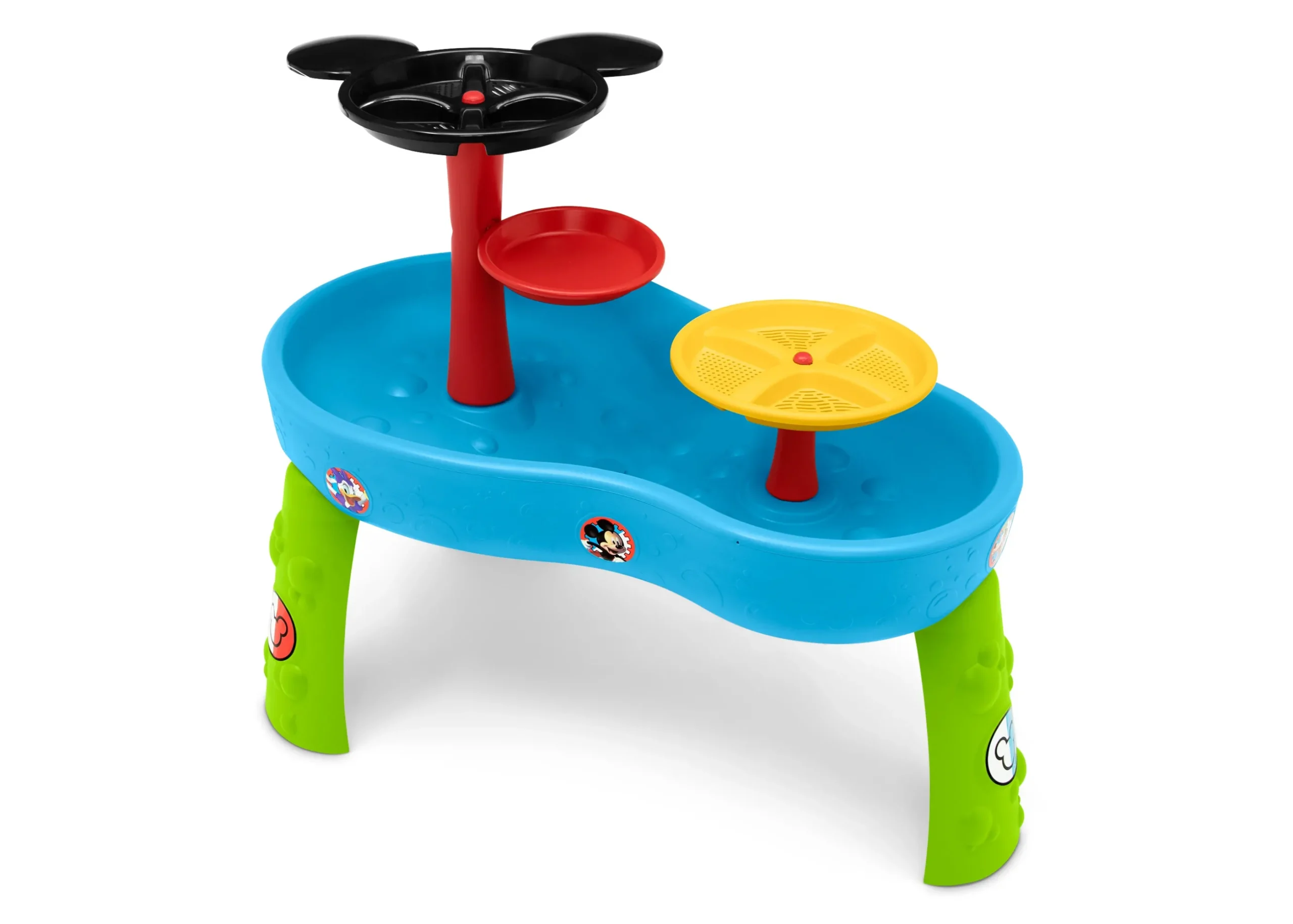 - Colorful weather-resistant Mickey Mouse stickers decorate the water table