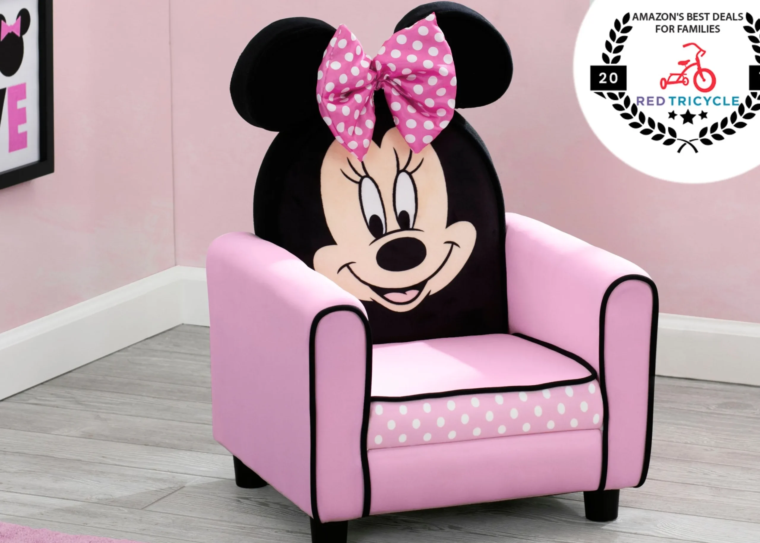 Minnie-shaped backrest and pink seat adds a sweet touch to any room