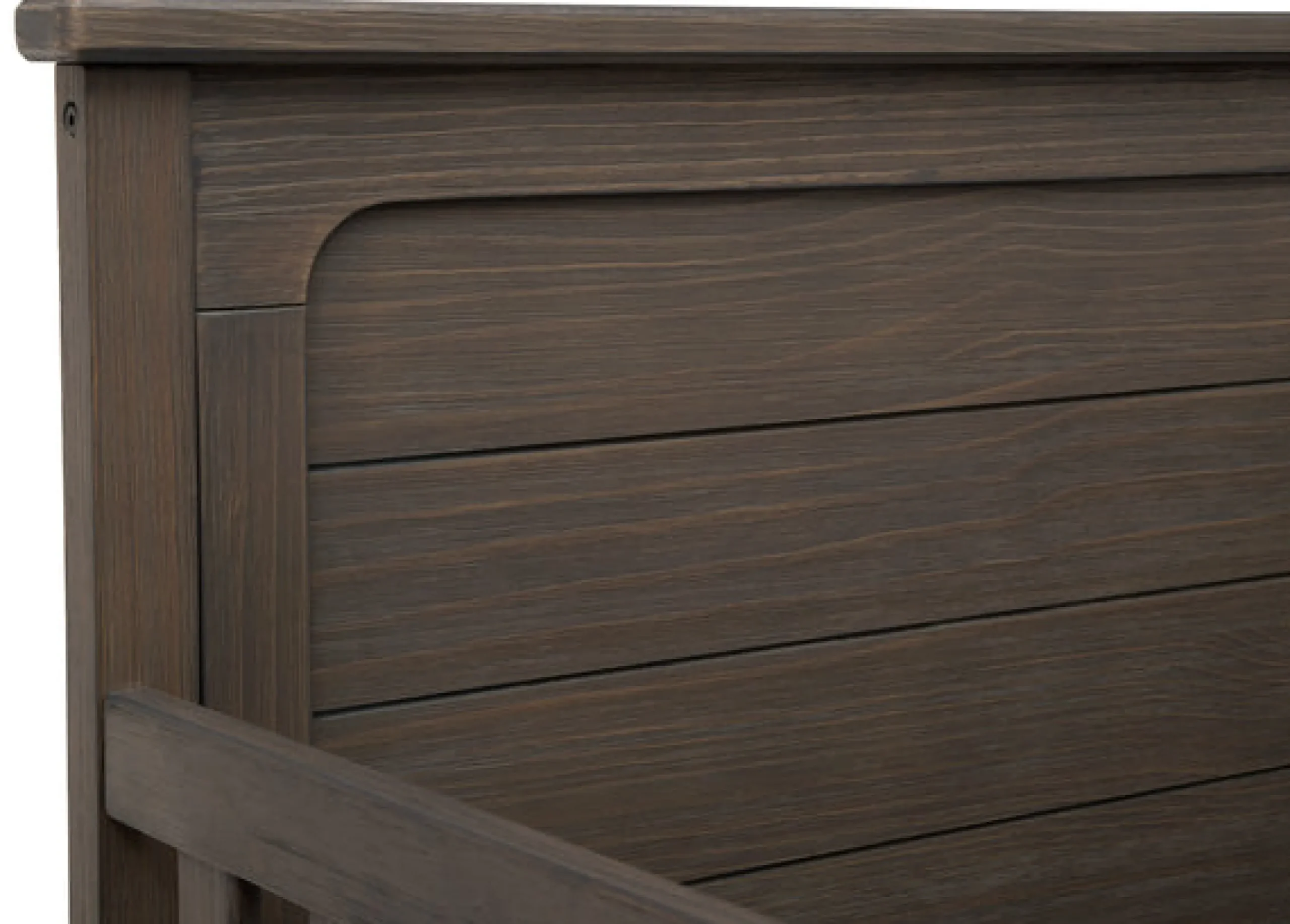 Shiplap-inspired paneling, visible woodgrain, and gently rounded corners evoke a cozy farmhouse feeling