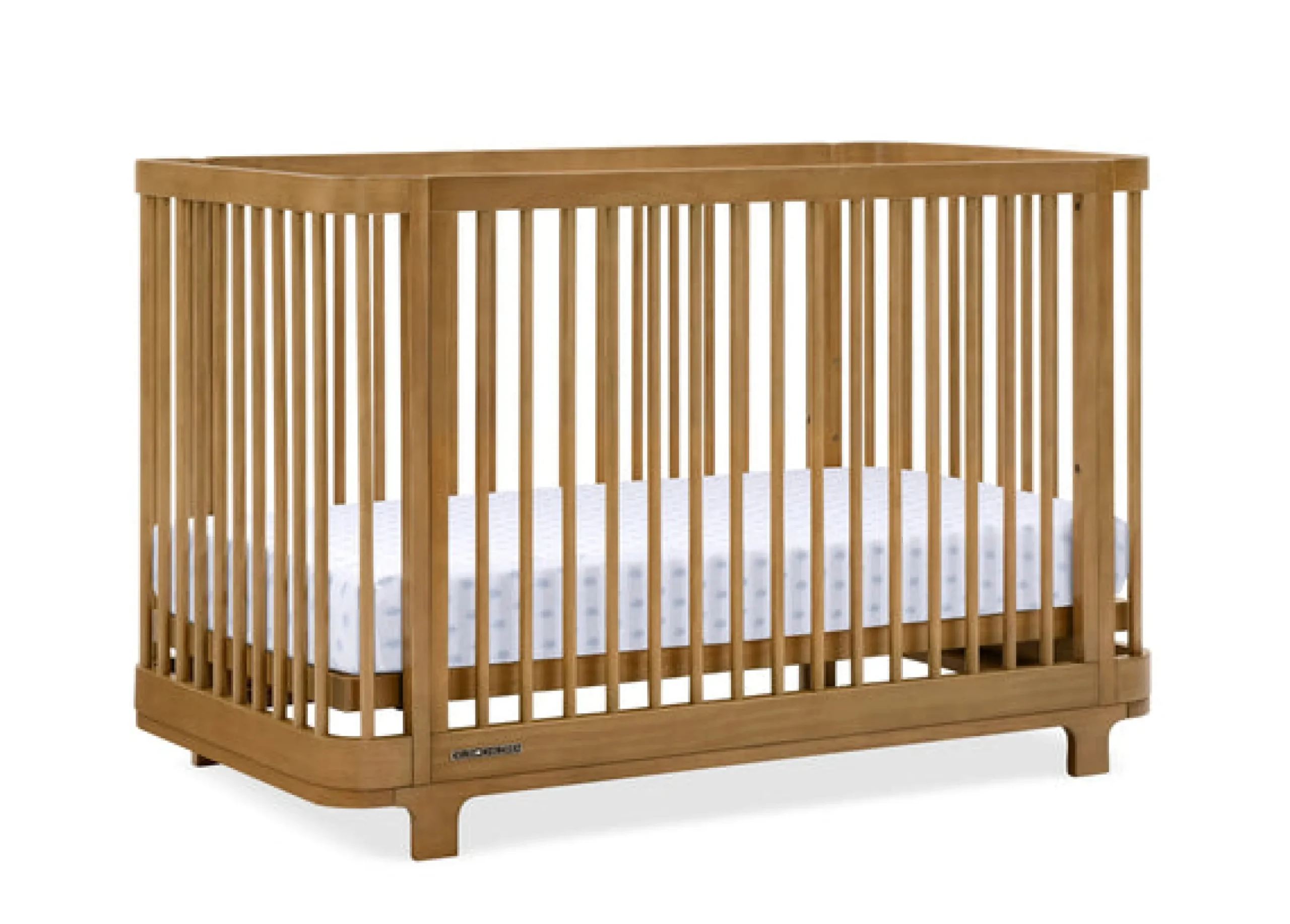 The Nest 4-in-1 Convertible Crib features gently curved corners, stylish rounded spindles and playfully arched feet to turn your nursery into a modern oasis