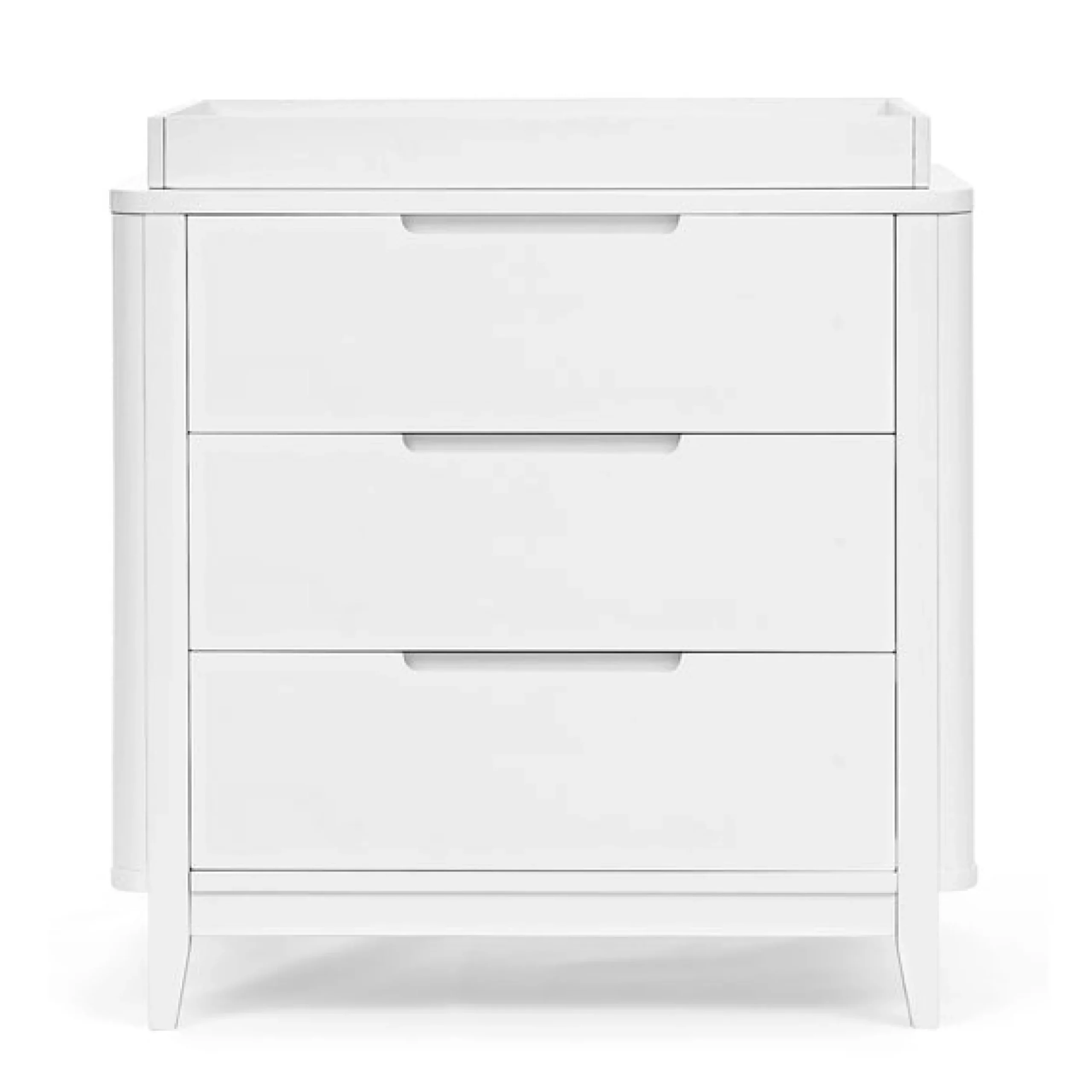 This dresser features 3 drawers for plenty of storage space. This spacious storage piece serves as a sturdy changing table too, with the included changing topper (changing pad sold separately). When your child grows, just remove the topper, it easily transitions into a stand-alone dresser