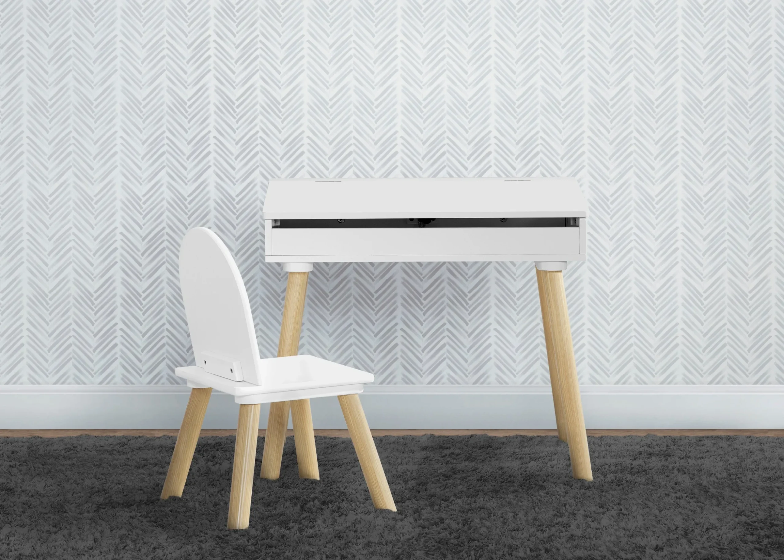 Give your child a stylish spot to draw, read or do homework with the Ollie Lift-Top Desk and Chair for Toddler and Kids by Delta Children. This mid-century modern desk with a solid-colored top and natural-colored tapered legs is a sleek, space-saving option that covers all the bases. The spacious desktop provides enough surface area for all their essentials, plus it comes with a coordinating chair and built-in storage. The lift-top desk provides tons of hidden storage for notebooks, pencils, markers, crayons and more. Desk is recommended for children ages 3-8 years old.