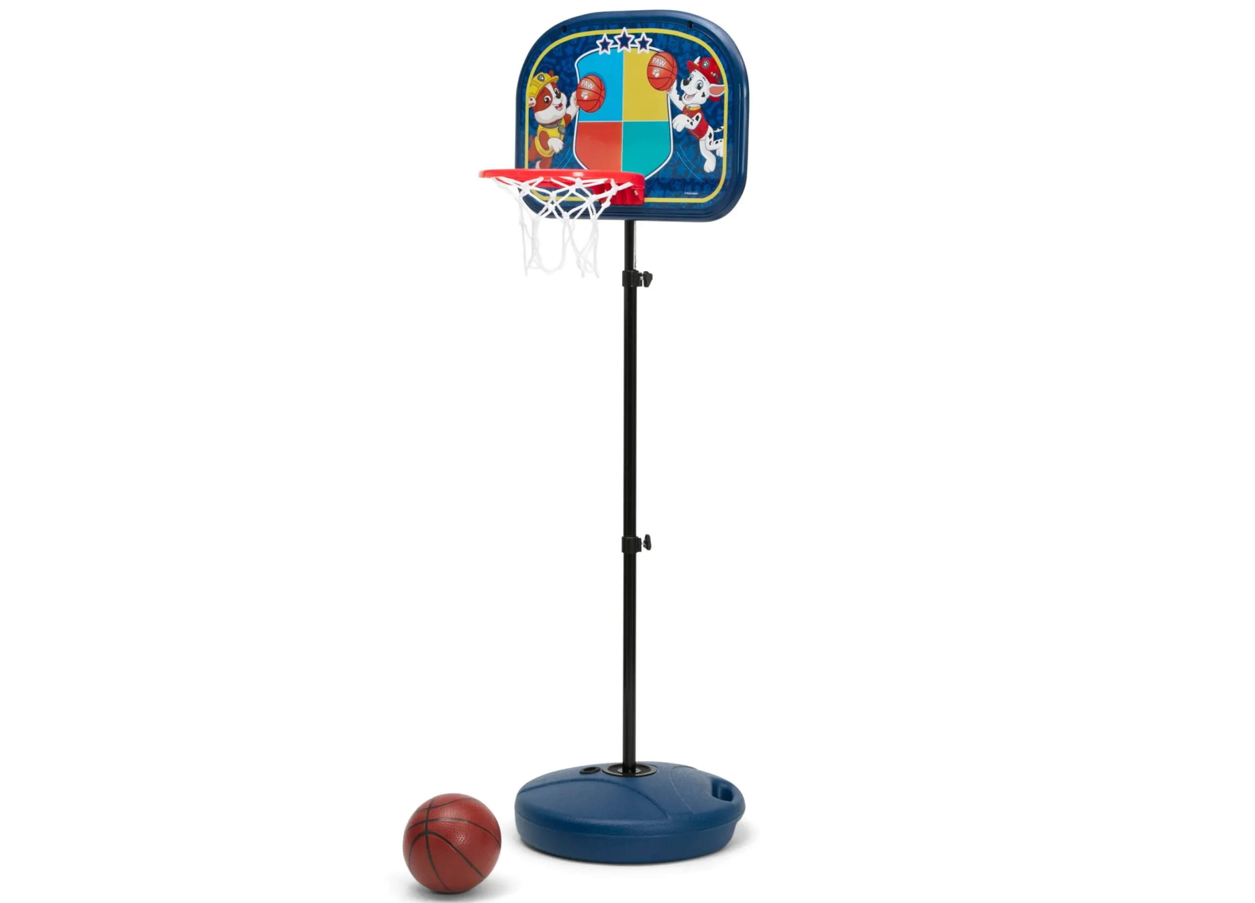 Score big points with the basketball fan in your life with this PAW Patrol Basketball Hoop Set by Delta Children! The backboard features everyone’s favorite PAW Patrol pups, Marshall and Rubble. It will help kids develop social, motor skills and coordination—they will work on their gross motor skills as they run and shoot the basketball and practice fine motor skills and hand-eye coordination as they try to control the basketball. The height can be adjusted to multiple settings between 4.2 and 5.25 feet to accommodate all ages and skill levels. Use inside or outside. Before play, add sand or water to the base for stability. Includes basketball and hand air pump.