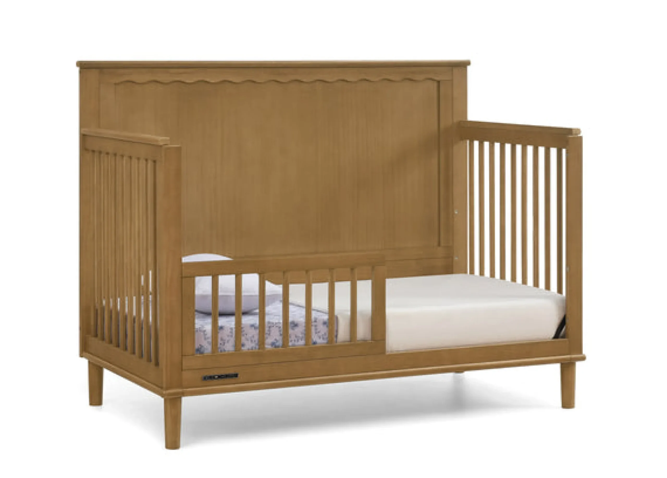 With charming scalloped molding, the Penelope 6-in-1 Convertible Crib by Delta Children adds a sculptural element to your nursery with its elegant “wave” detailing. Crafted of sustainable pine with a satin glaze finish, the Penelope is an heirloom piece that grows with your child over the years. Simply convert this crib into toddler bed, daybed, sofa or full size bed with and without footboard when your child is ready (Daybed/Sofa Rail included; Toddler Guardrail #W100725 and Full Size Wood Bed Rails #0050 sold separately). With three mattress positions that easily lower as your baby begins to sit, pull up and stand, you can find the height that’s best for them at every stage. Plus, it’s GREENGUARD Gold Certified, which means it’s built to contribute to cleaner air for a healthy home. Crib mattress sold separately.
