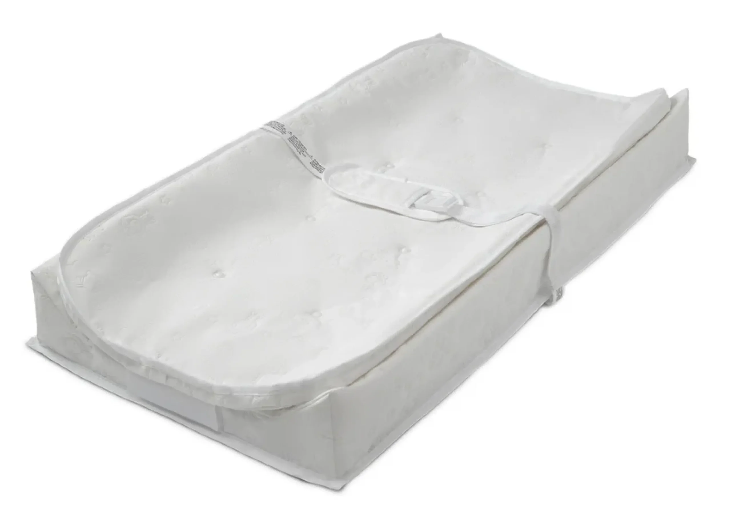 The comfortable and supportive Serta Perfect Sleeper 2-in-1 Deluxe Pillow Top Changing Pad & Portable Changing Mat creates a cozy place for your baby during diaper changes—at home and while on the go! The changing pad’s waterproof and hypoallergenic cover with an embossed Serta sheep print is extremely easy to wipe clean. Its deluxe memory foam pillow top is securely attached with hook and loop closures but can be easily removed for on-the-go diaper changes, just roll it up and throw it in your diaper bag! When using at home, the included hardware allows you to easily secure the changing pad to any dresser while a non-skid bottom, contoured sides and a quick-release child safety buckle with fabric pinch guard keep your baby safely in place while changing.