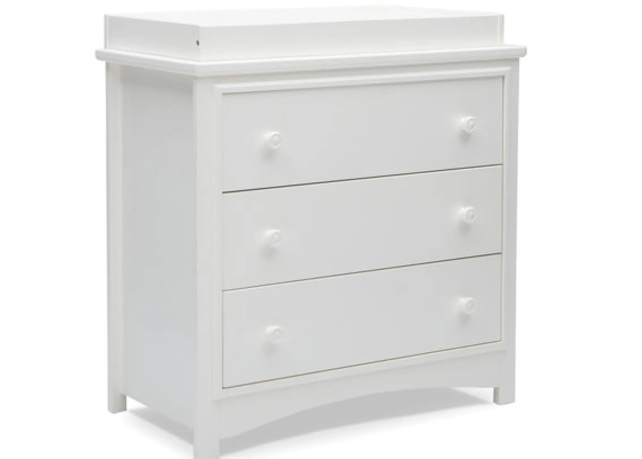 An array of smart design details makes the Perry 3 Drawer Dresser with Changing Top and Interlocking Drawers by Delta Children a standout style. The round drawer pulls accent the three spacious drawers that are trimmed with picture frame molding. Topped with a removable changing top, this nursery dresser creates the perfect space for diaper changing sessions now and is easily removable, so you can create a more grown-up space later on. For your child’s safety, this dresser is outfitted with an interlocking drawer system that limits the number of drawers that can be opened at one time. Available in Bianca White, Moonstruck Gray and Walnut Espresso. Complete your space with coordinating items in the Delta Children Perry Collection.This Delta Children dresser is tested to meet the current requirements of ASTM F2057, the mandatory CPSC safety standard that protects young children from furniture tip-over incidents. For your children’s safety, only purchase dressers that comply with this standard. For additional security, Delta Children strongly recommends that all dressers in your home be anchored; all Delta dressers include a wall anchor. To learn how to properly secure your dresser, please see the product assembly instructions or visit our website.