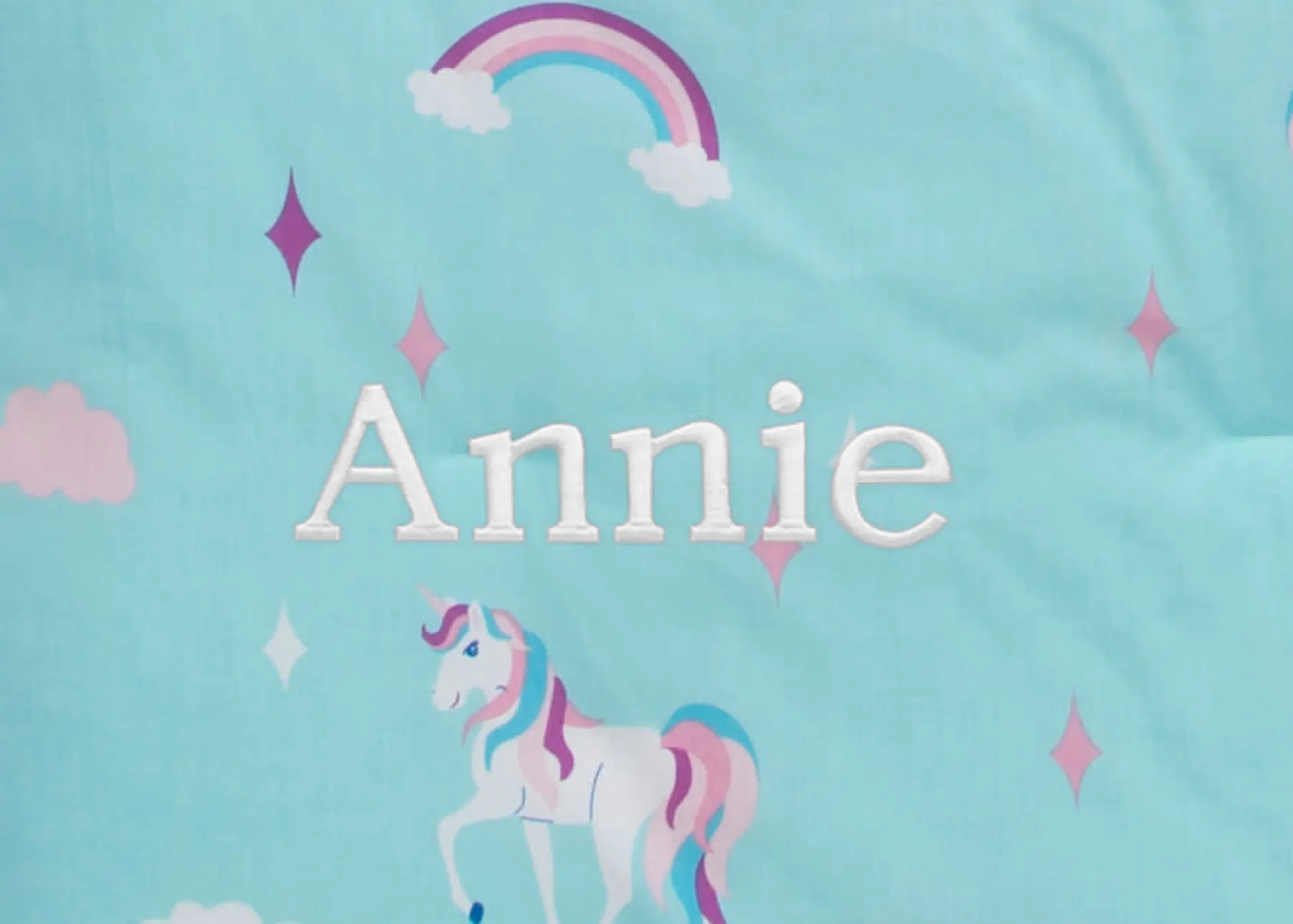 Available in multiple thread colors, fonts and up to 9 characters, your child’s name will be beautifully embroidered in the design of your choice