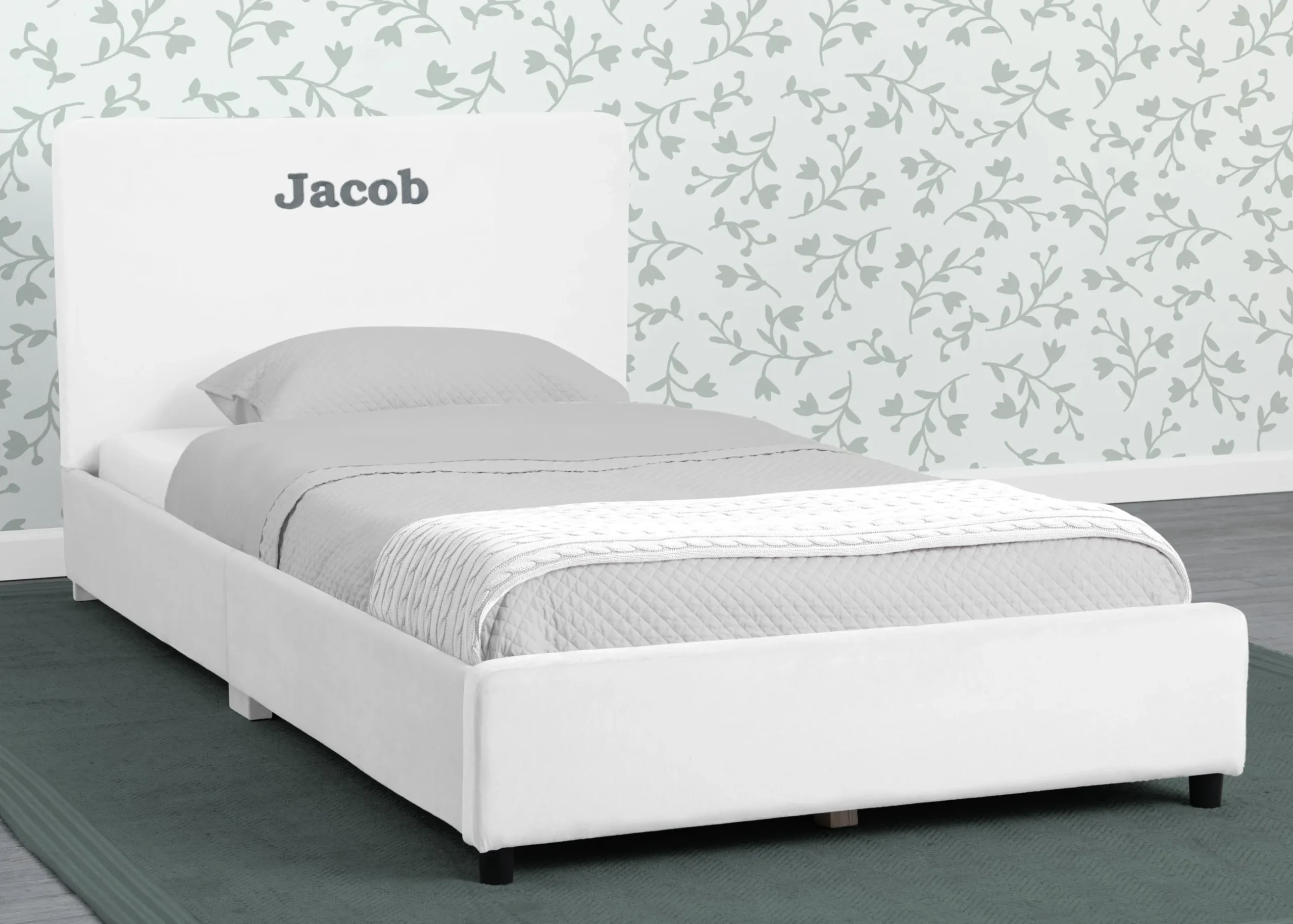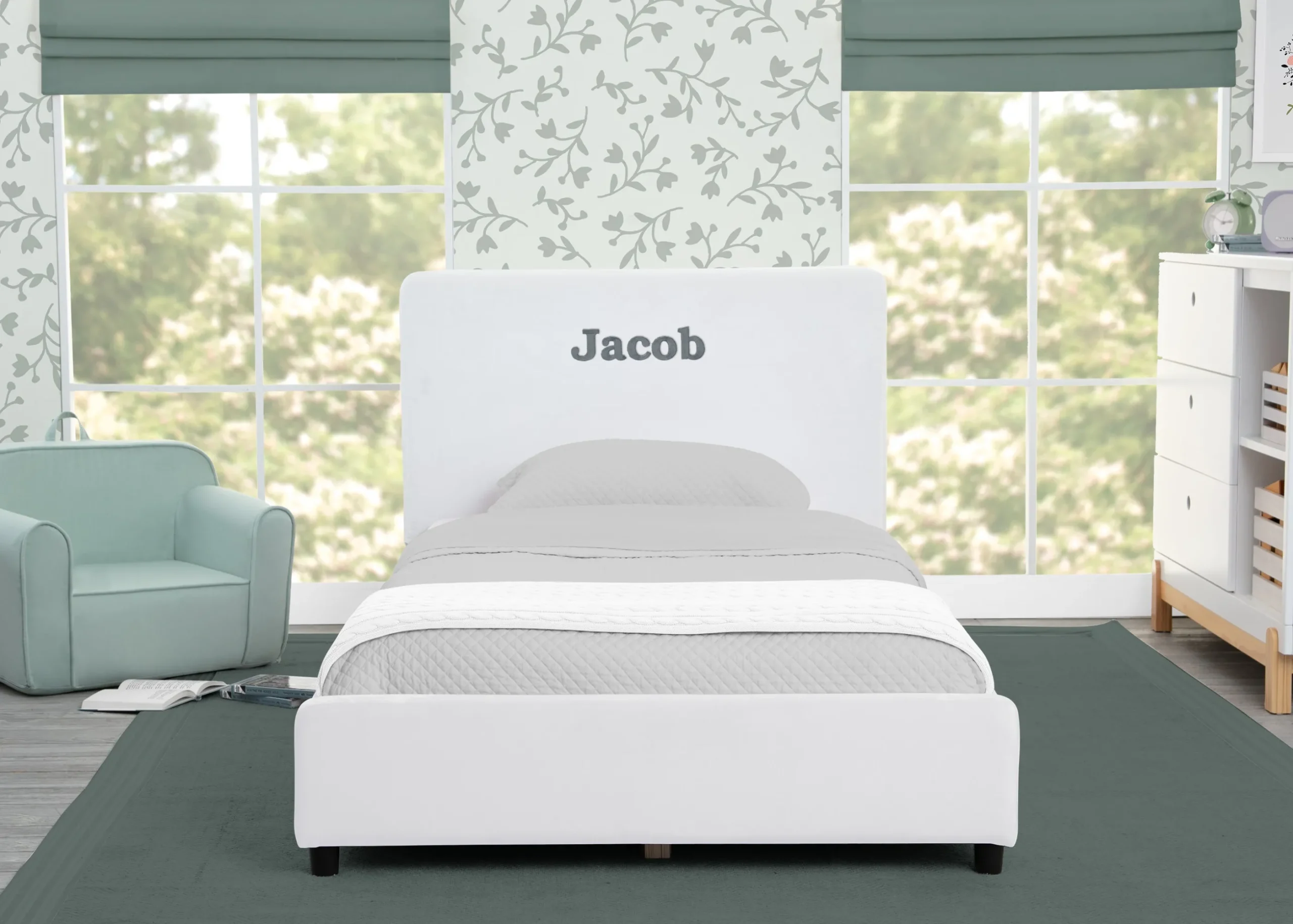 - Your child’s name will be beautifully embroidered on the headboard in the font and thread color of your choice – add to your cart to customize!
