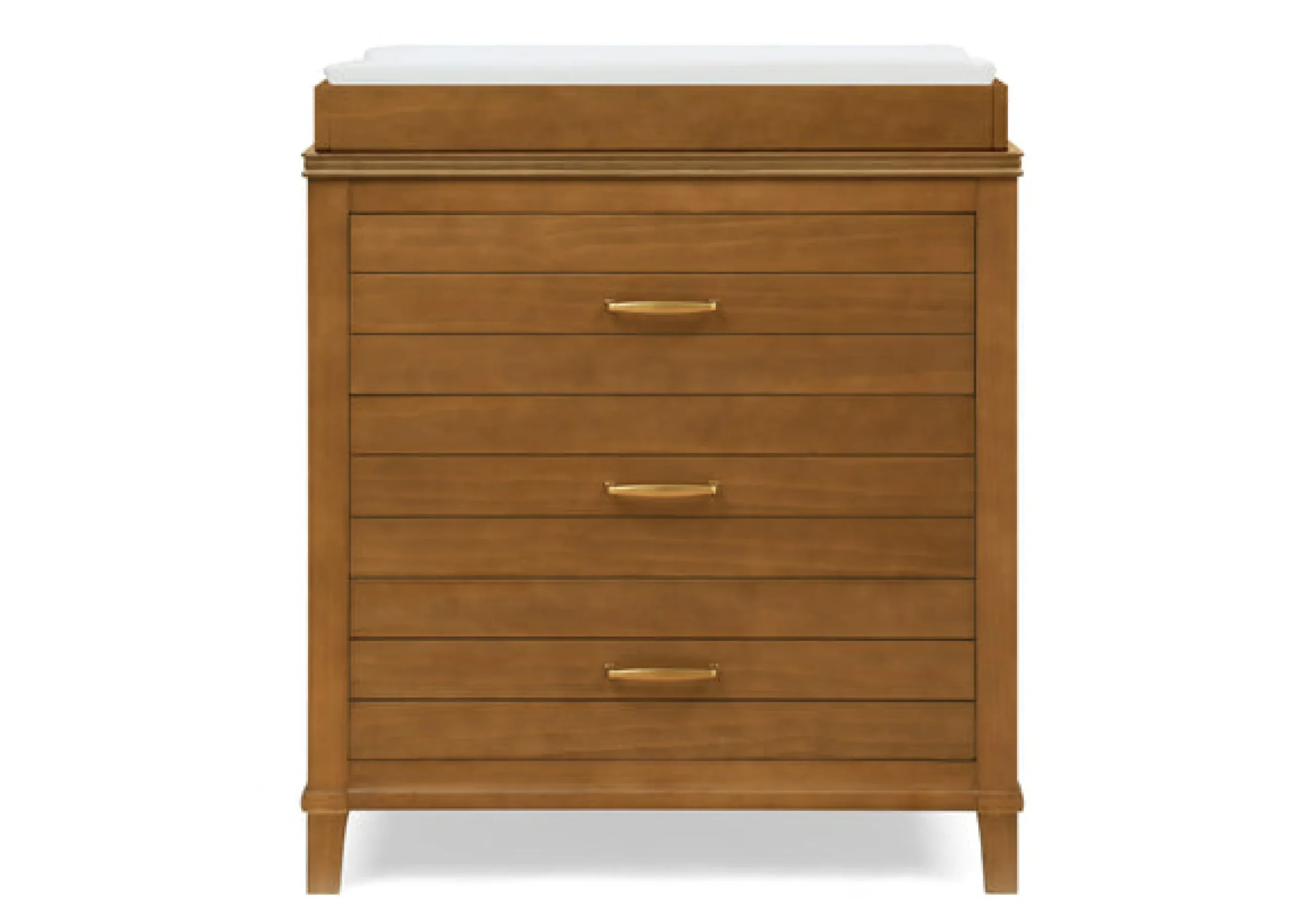 - The Phoebe 3 Drawer Dresser with Changing Top coordinates with the Delta Children Phoebe 6-in-1 Convertible Crib