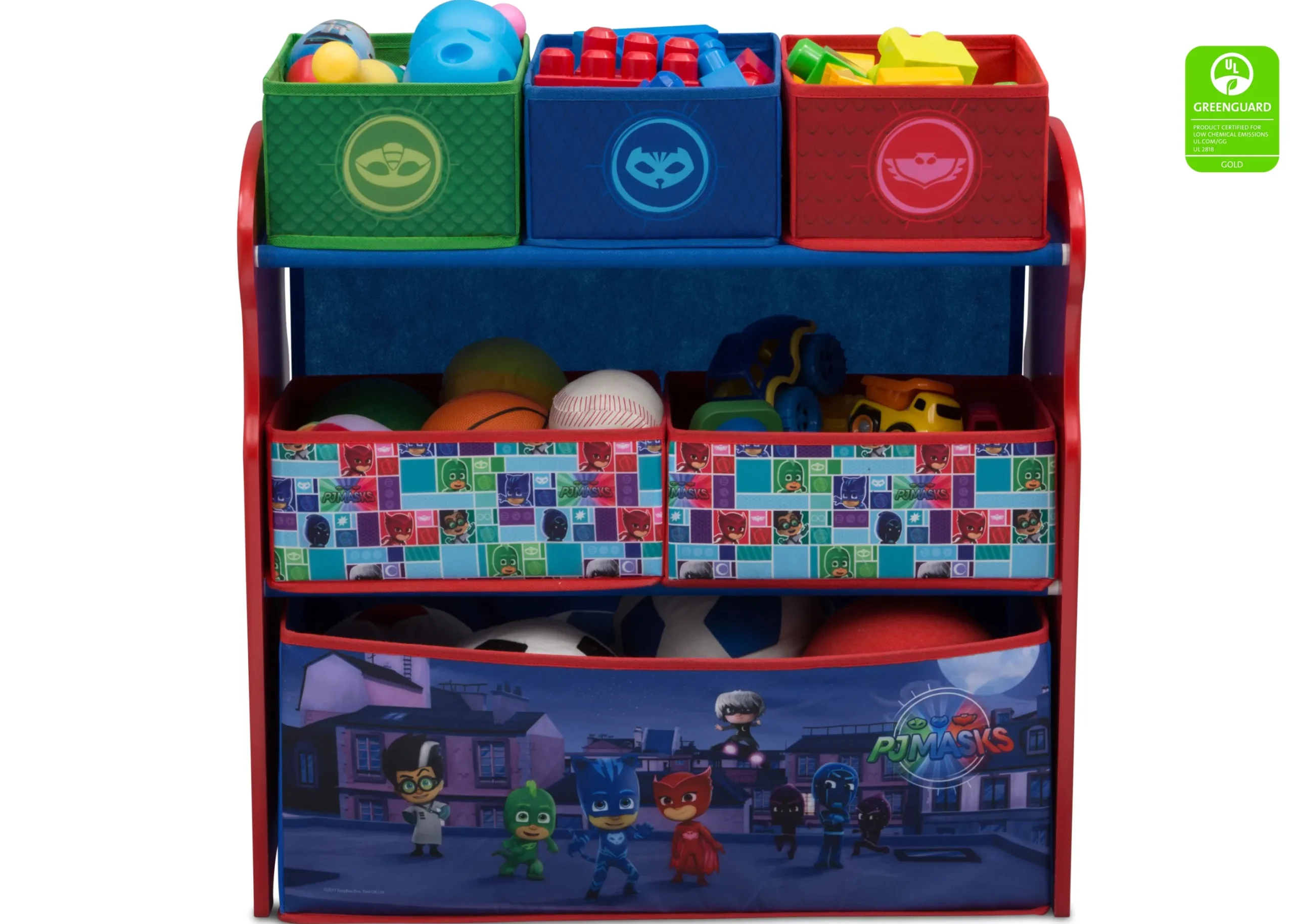 Ready to save bedrooms or playrooms from clutter, this PJ Masks Multi-Bin Toy Organizer will help make cleaning up fun and easy! Covered in colorful graphics of their favorite crime fighters, this practical storage solution is supported by a sturdy frame and features fabric bins to fit toys of all shapes and sizes.
