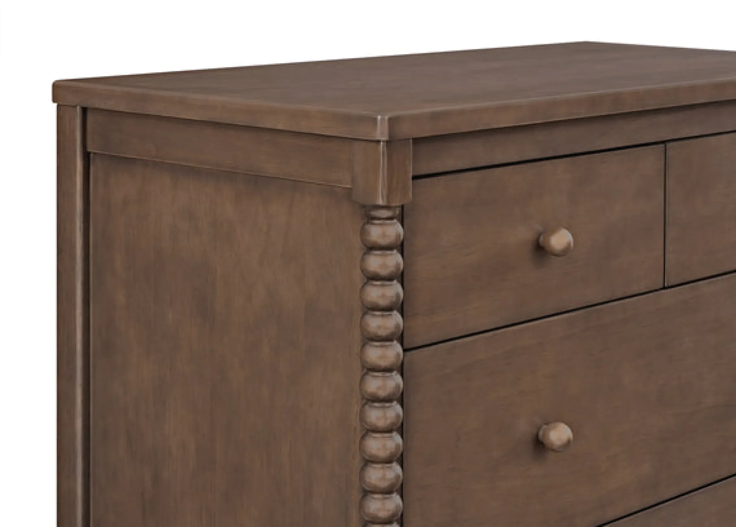 - Designed to elevate any nrusery or bedroom, this dresser feature solid wood turned posts