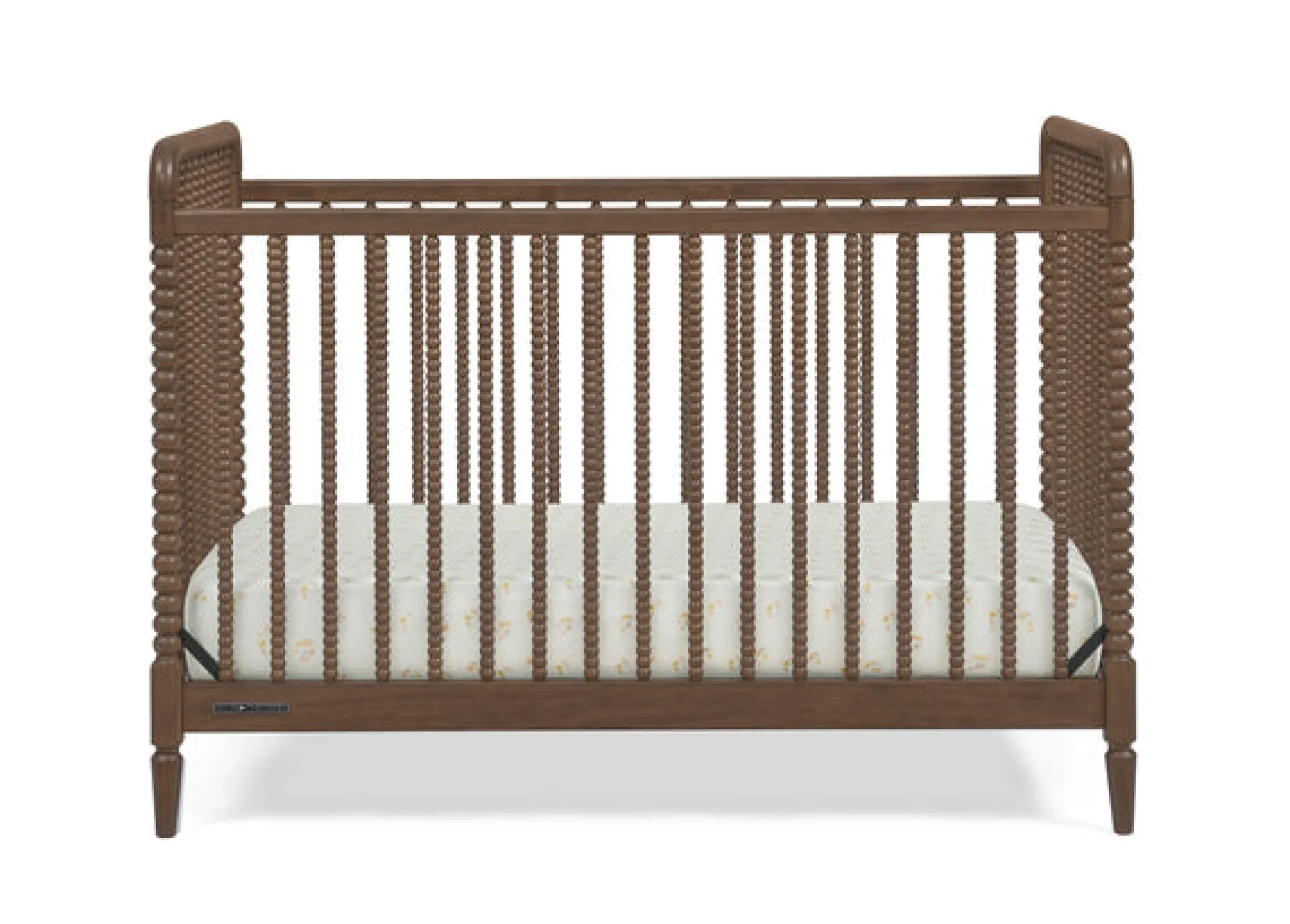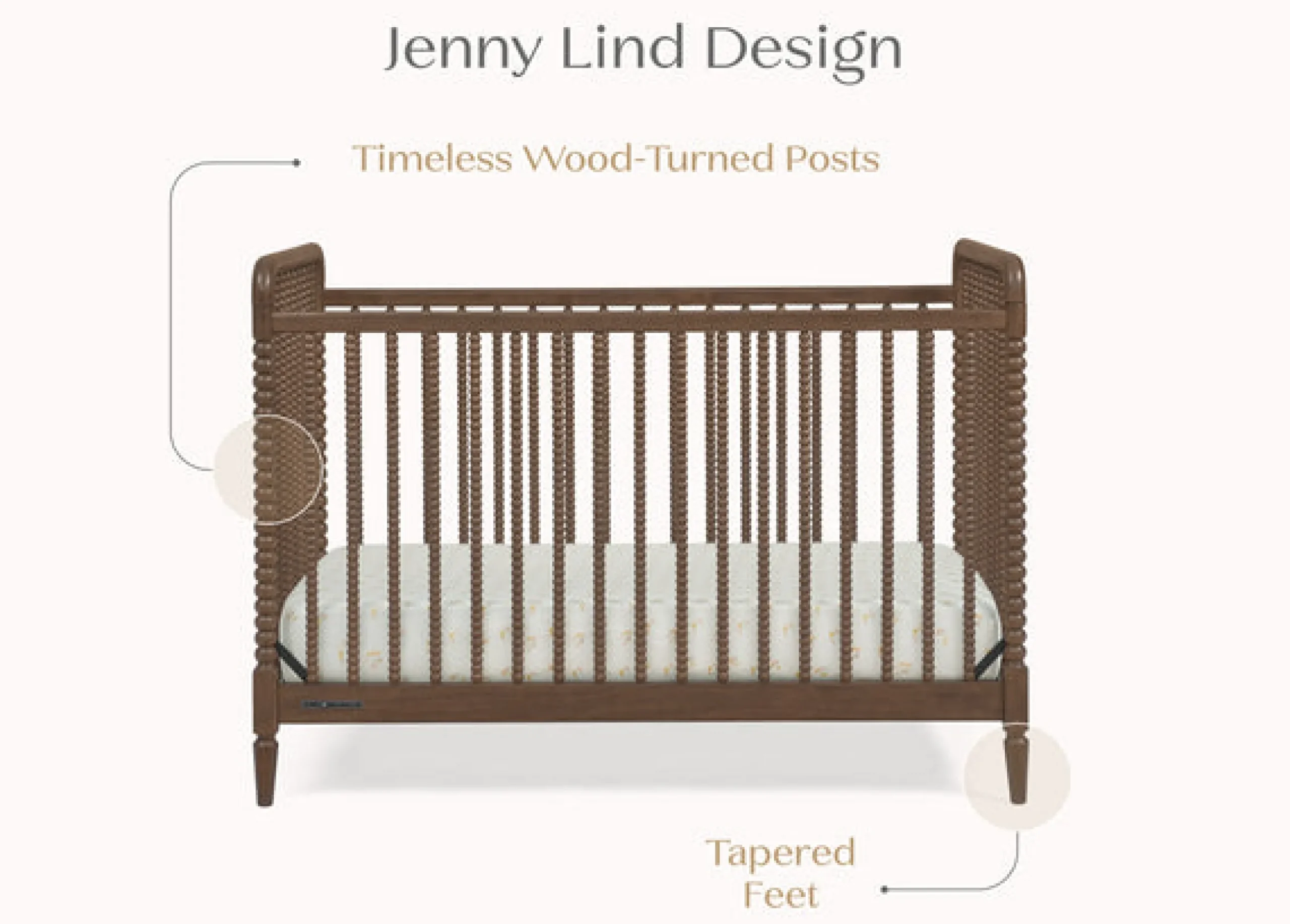 A modern take on vintage-inspired Jenny Lind furniture, the Saint 4-in-1 Convertible Baby Crib is adorned with solid wood turned spindles all around